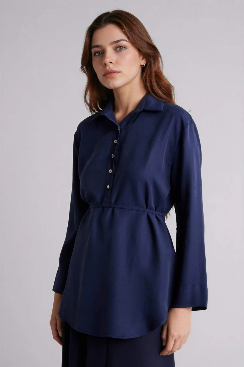 Defacto G7263AXNV31 Lacivert Regular Fıt Modal Uzun Kollu Tunik