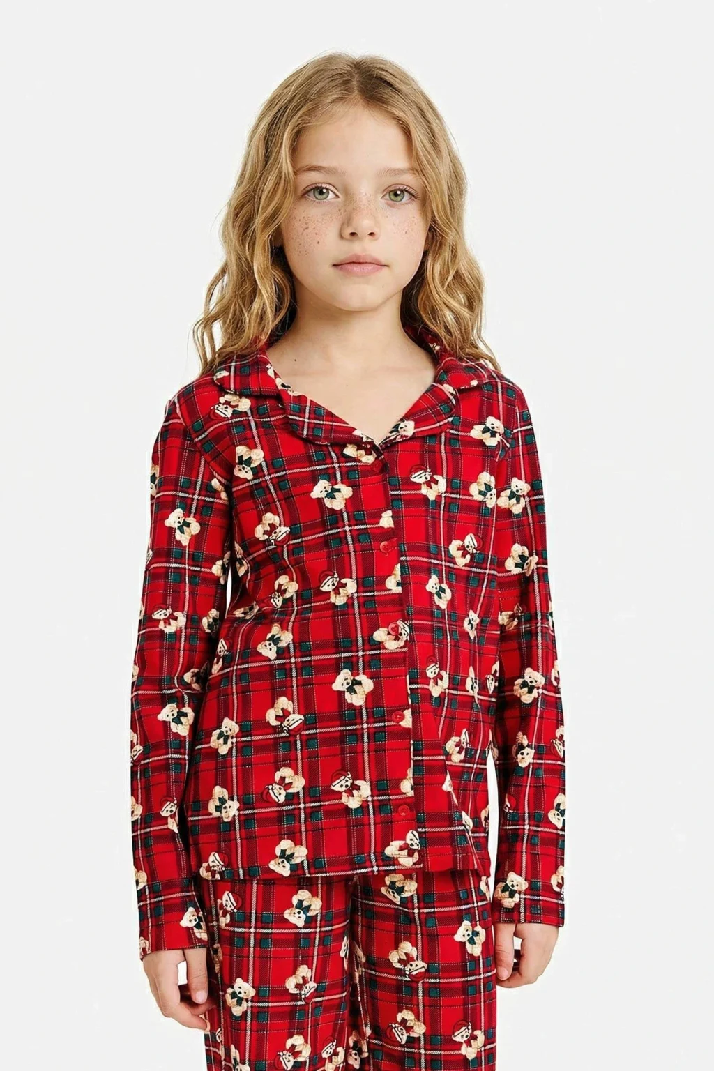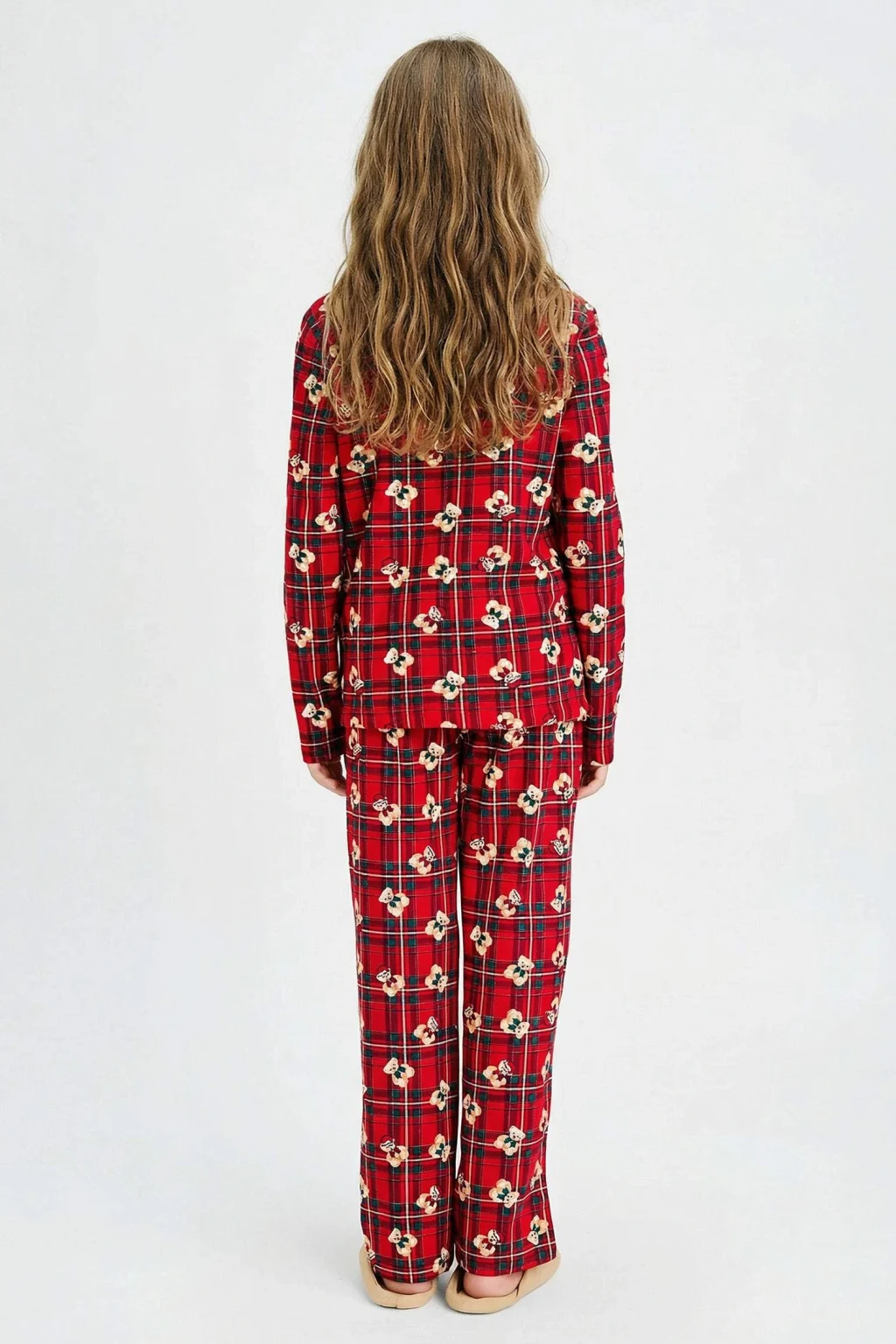 Kareli desen ve sevimli ayıcık detayıyla öne çıkan bu kız çocuk pijama takımı, uzun kollu üstü ve uzun altı ile konforlu bir uyku deneyimi sunar. Yumuşak kumaşı sayesinde gece boyu rahatlık sağlar.