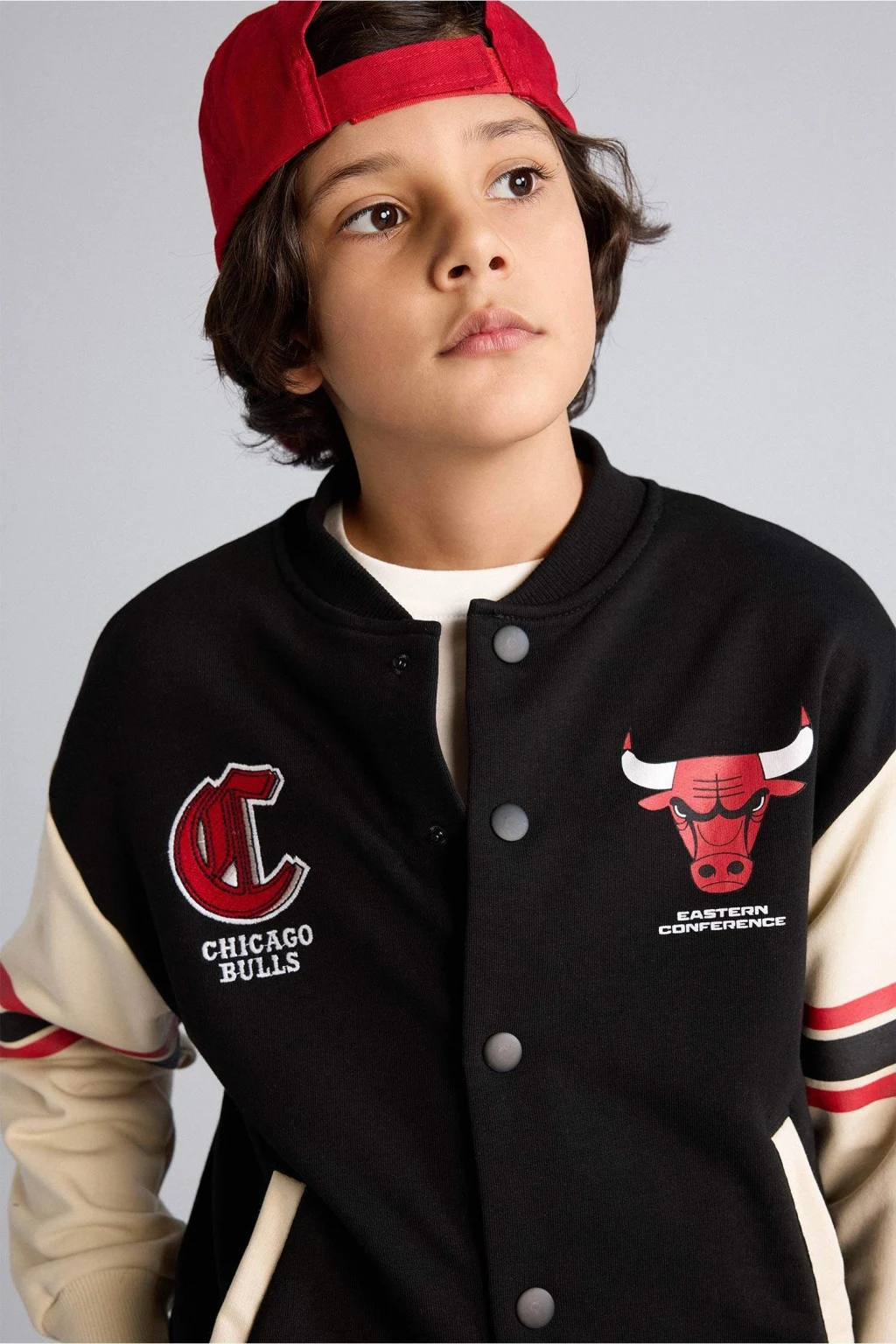 NBA Chicago Bulls baskılı kolej yaka bomber hırka, hem şık hem de rahat bir üst giyim seçeneğidir. Yumuşak ve esnek kumaşı, gün boyu konfor sağlar. Günlük kullanımda veya spor kombinlerde dikkat çekici bir stil sunar.