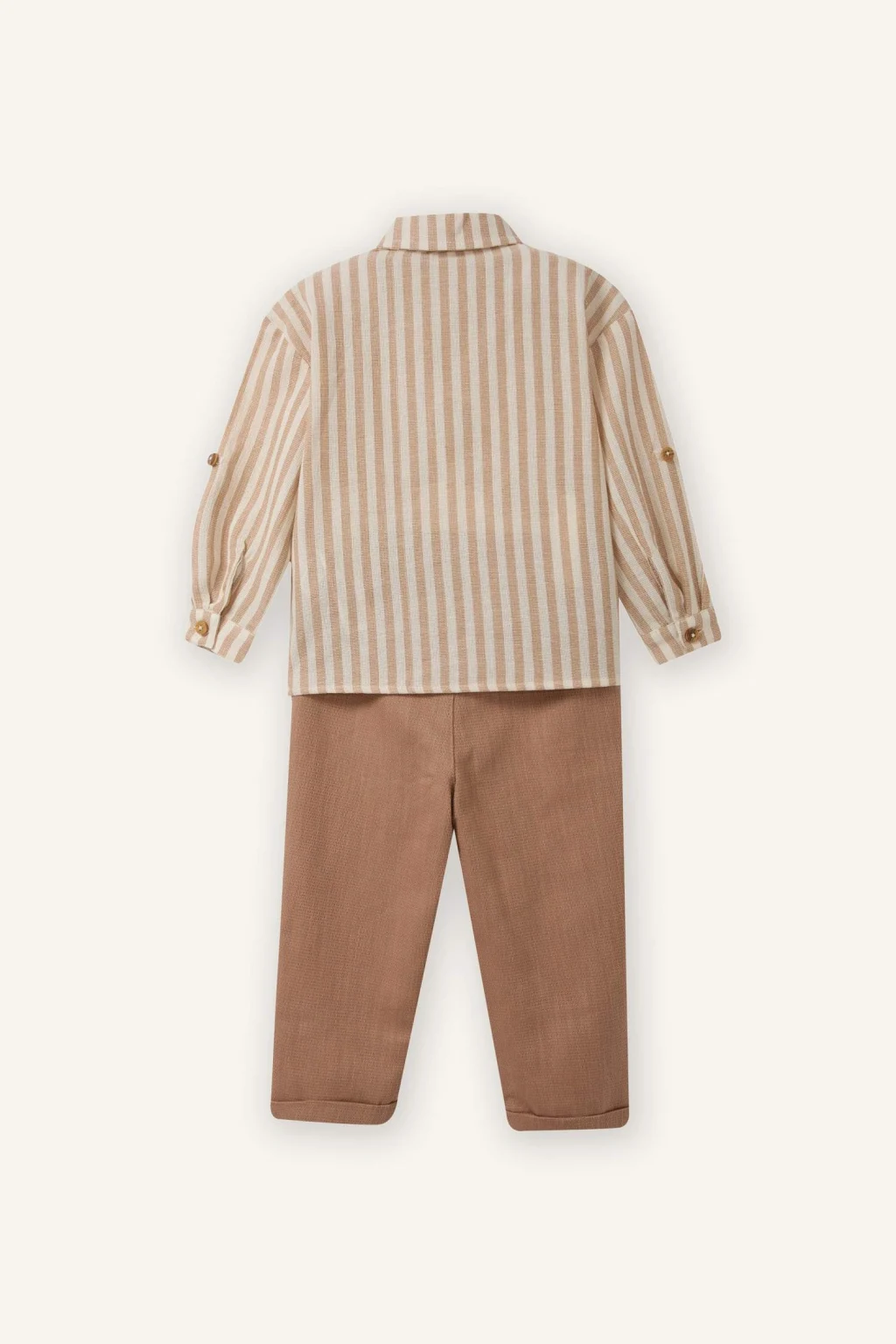 2’li takım erkek bebek seti, uyumlu üst ve alt parçasıyla pratik ve şık bir kombin sunar. Yumuşak ve rahat kumaşı sayesinde minikler gün boyu konforla hareket eder.