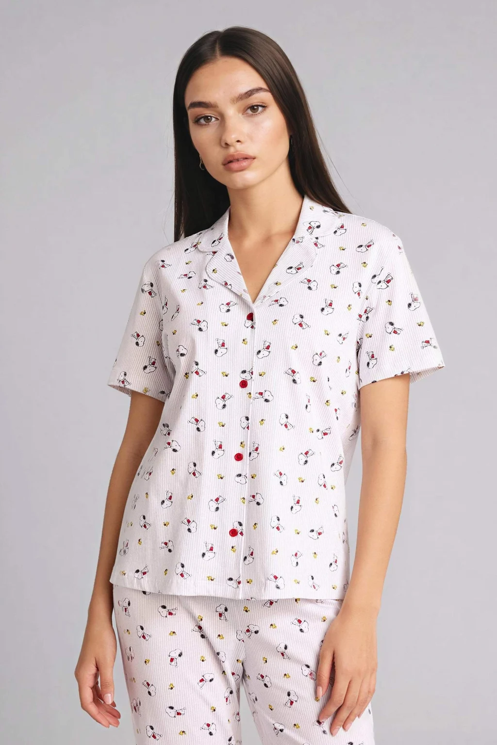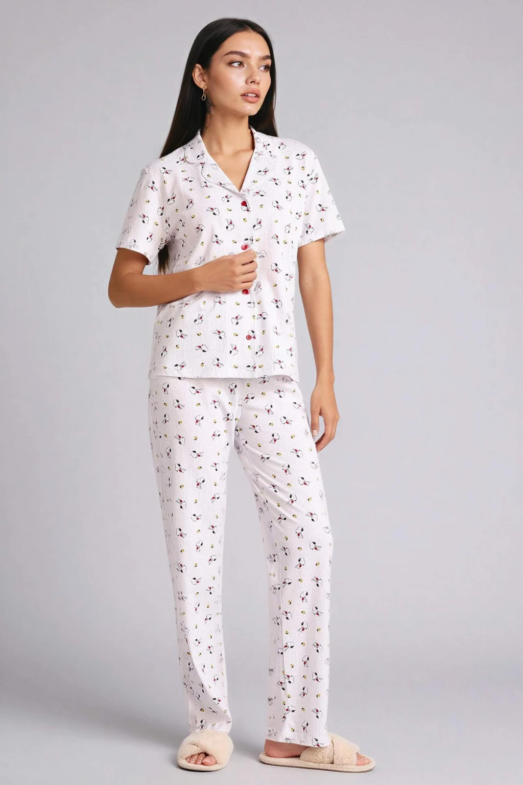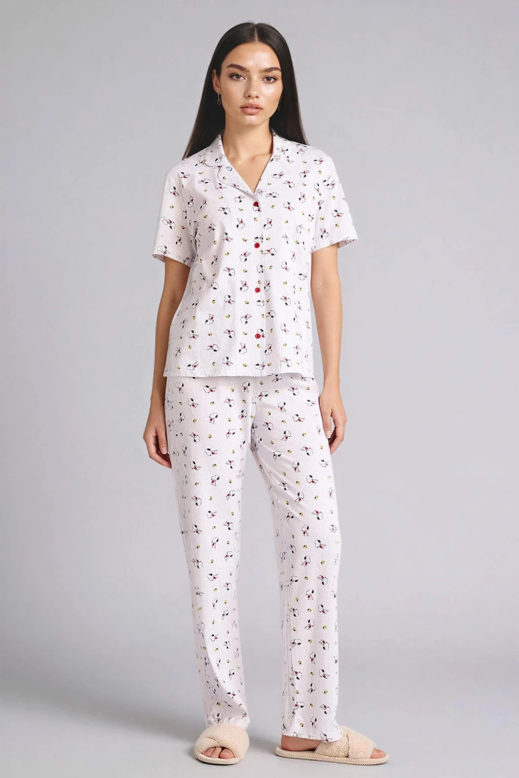 Sevimli Snoopy baskılarıyla Snoopy Pijama Takımı Üst Alt, konforlu ve şık bir uyku deneyimi sunar. Yumuşak kumaşıyla gün boyu rahatlık sağlar.