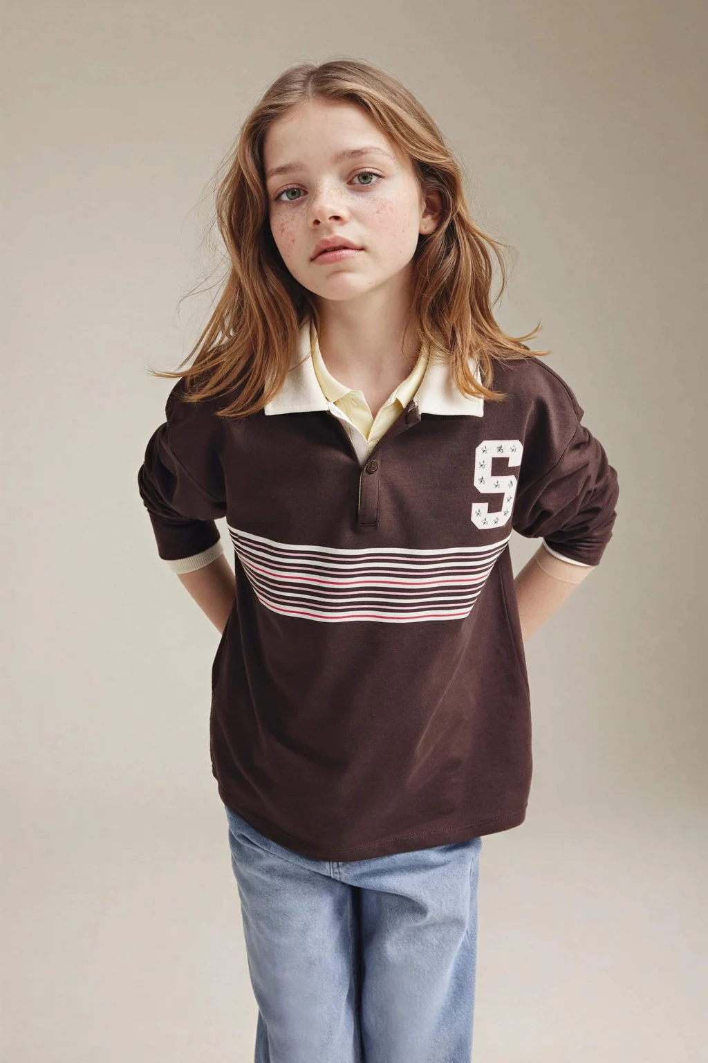 Polo yaka tasarımıyla klasik bir şıklık sunan kız çocuk tişört, canlı baskı ve çizgi detayıyla enerjik bir görünüm kazandırır. Rahat kesimi sayesinde gün boyu konfor sağlar ve jean veya eteklerle kolayca kombinlenebilir.