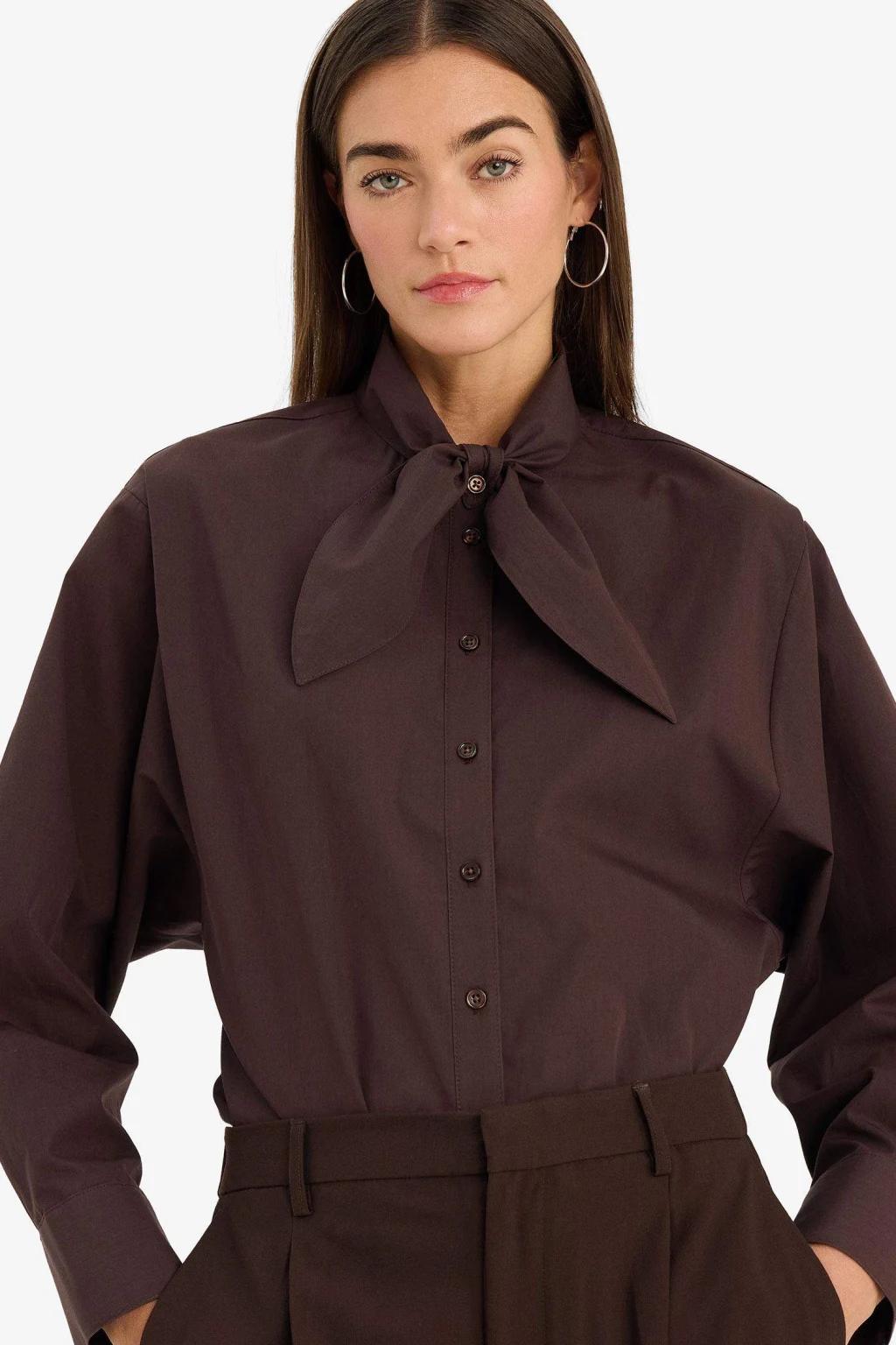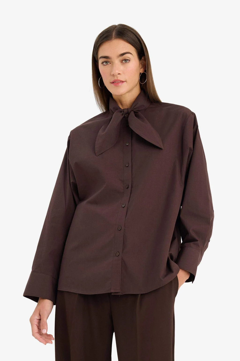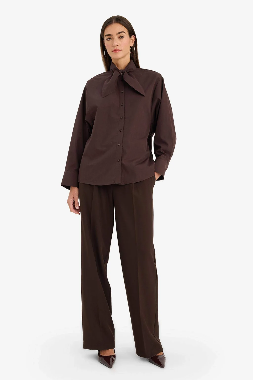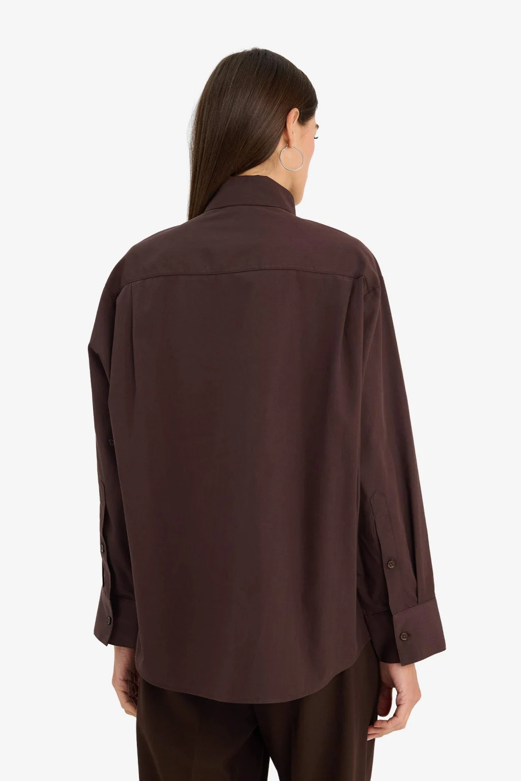Defacto G0143AXBN320 Kahve Relax Fıt Gömlek Yaka Flamlı Pamuk Uzun Kollu Gömlek