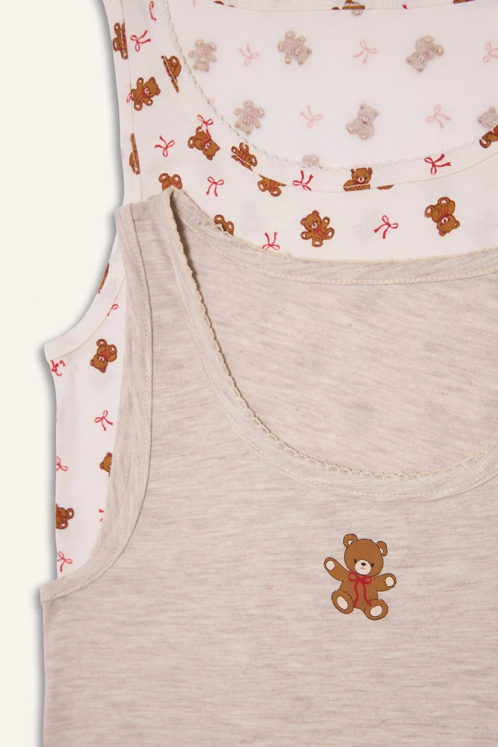 Yumuşak ve rahat kumaşıyla gün boyu kullanım sağlar. Sevimli ayı desenleriyle eğlenceli bir görünüm sunar. İkili paket avantajıyla pratik bir tercihtir.