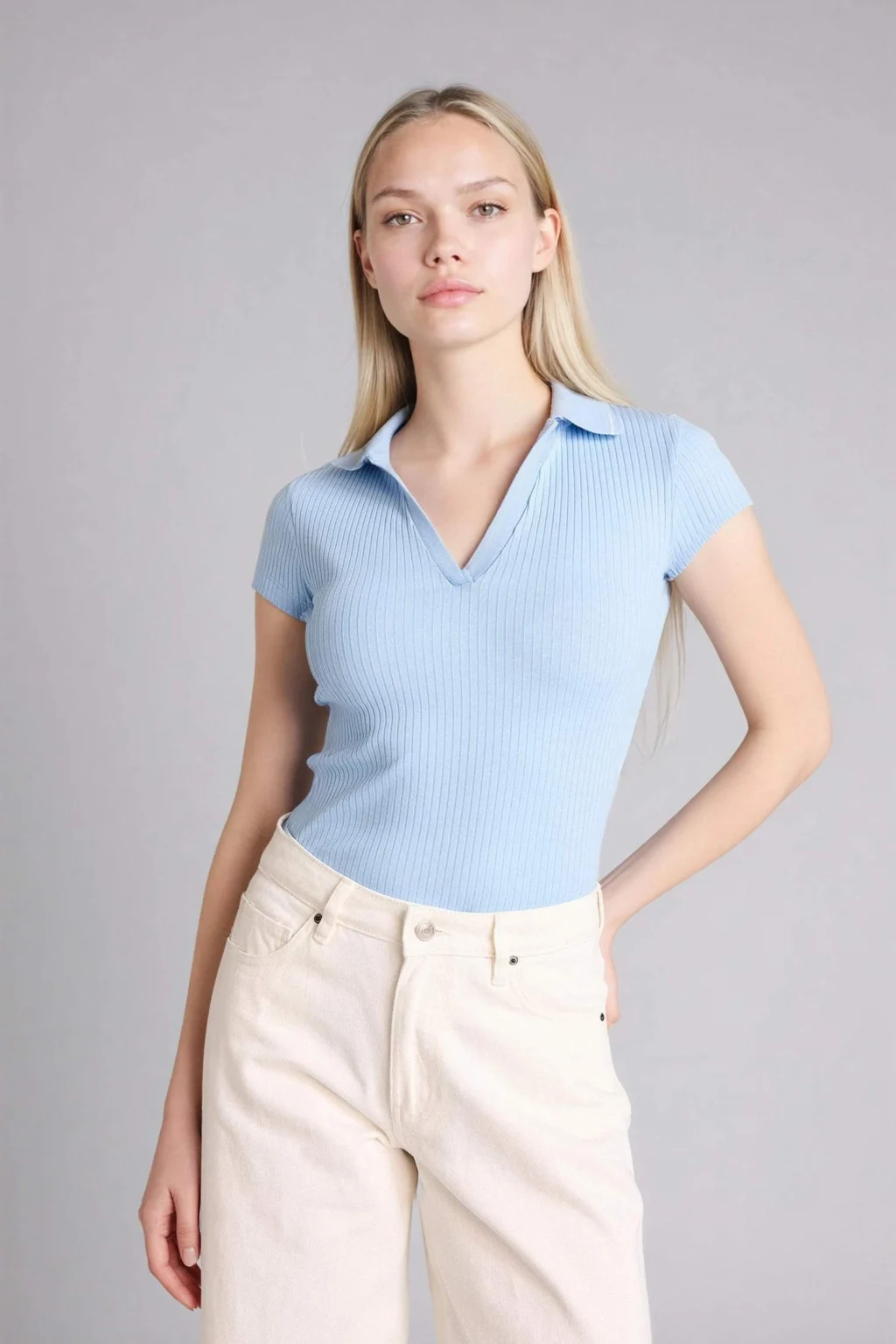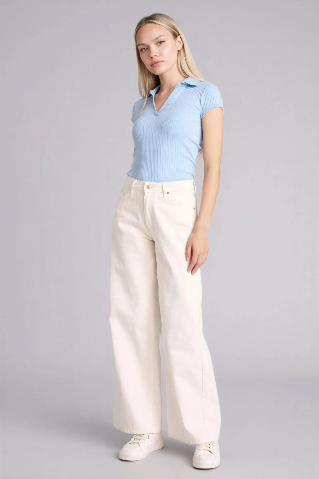 Defacto G9547AXBG260 Bej Slım Fıt Kayık Yaka Ribana Tişört