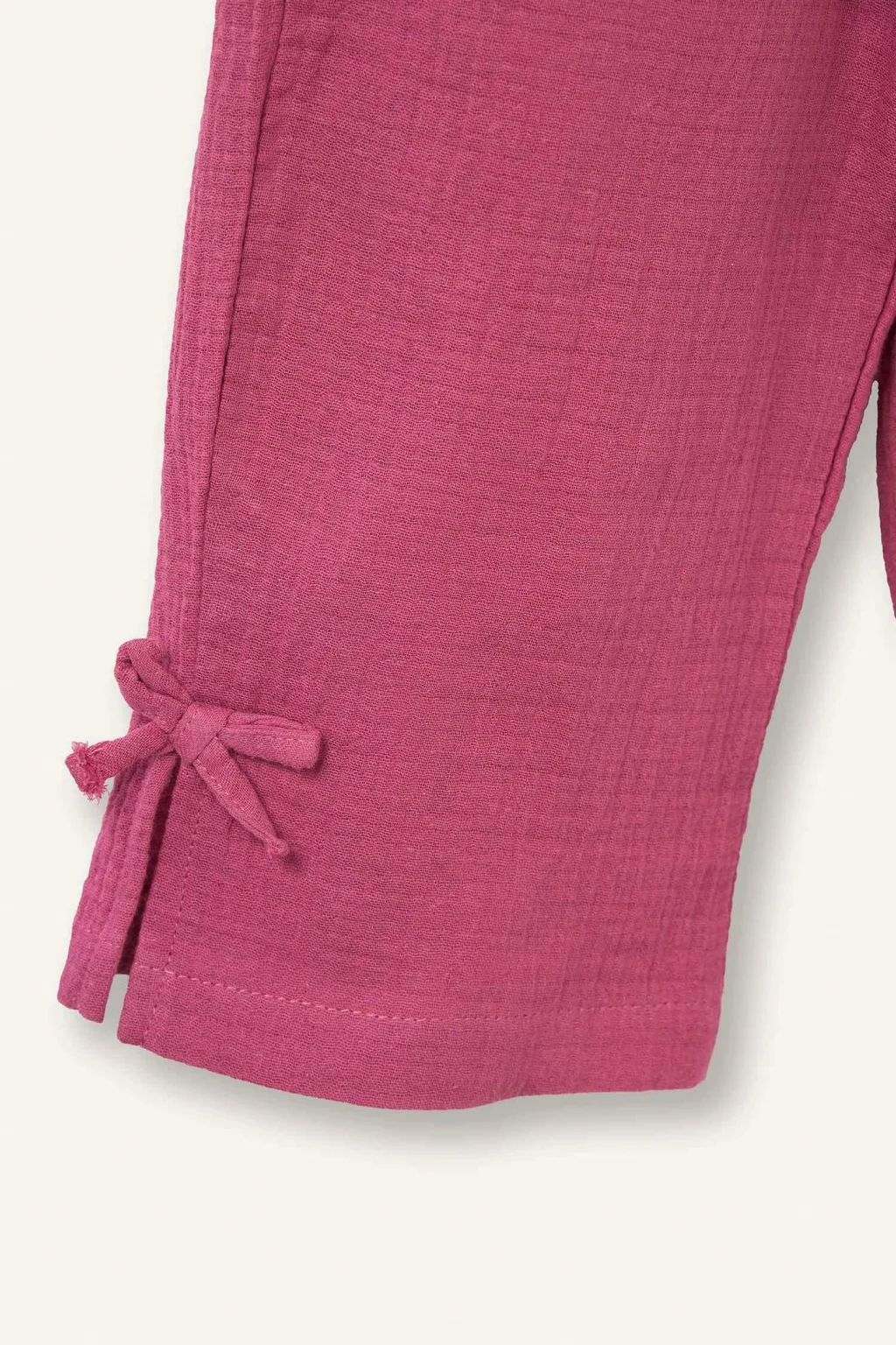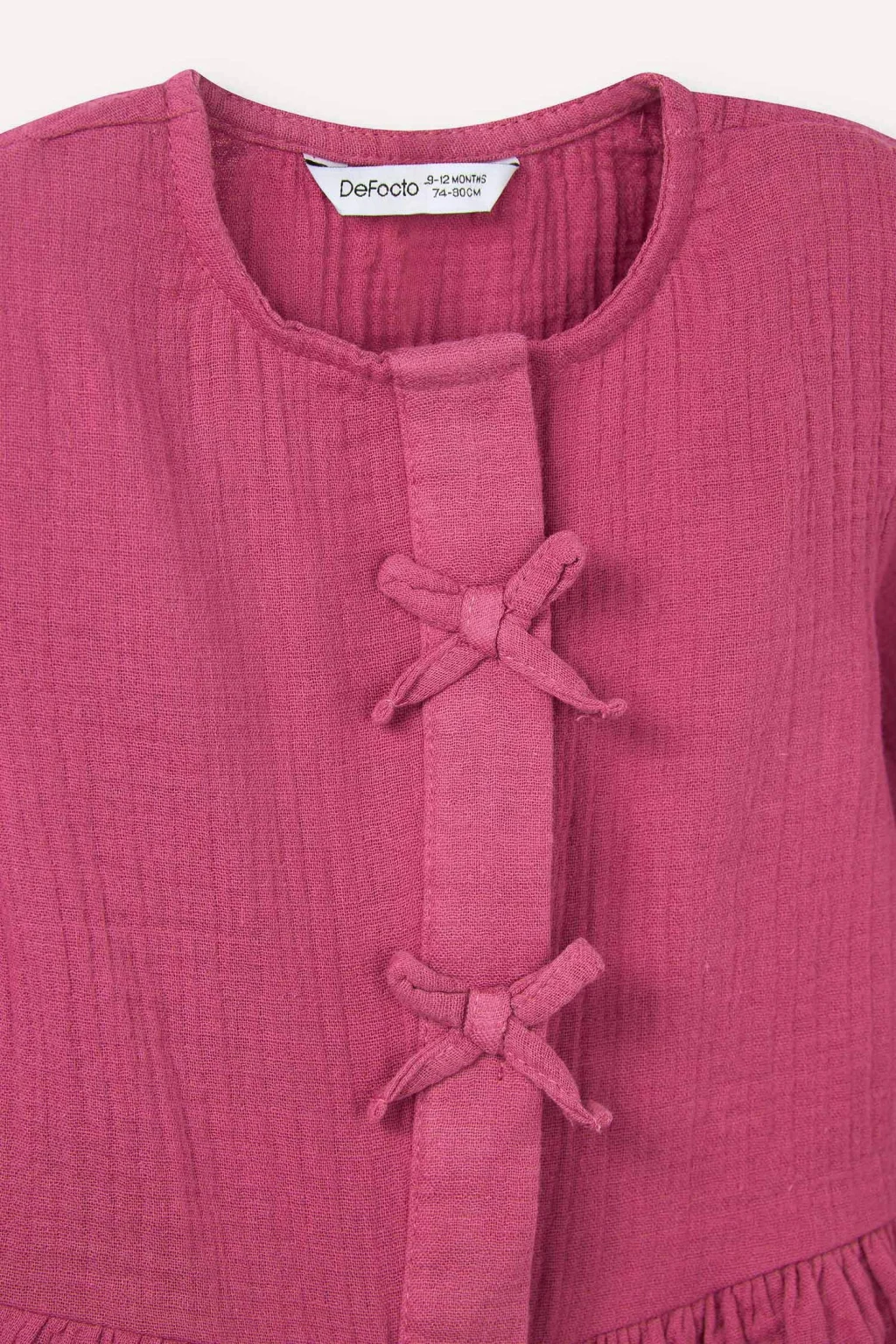 Müslin 2’li takım, kız bebekler için rahat ve şık bir kombindir. Yumuşak ve nefes alabilen müslin kumaşı gün boyu konfor sunar. Sevimli fiyonk detayları takıma zarif bir dokunuş katar.