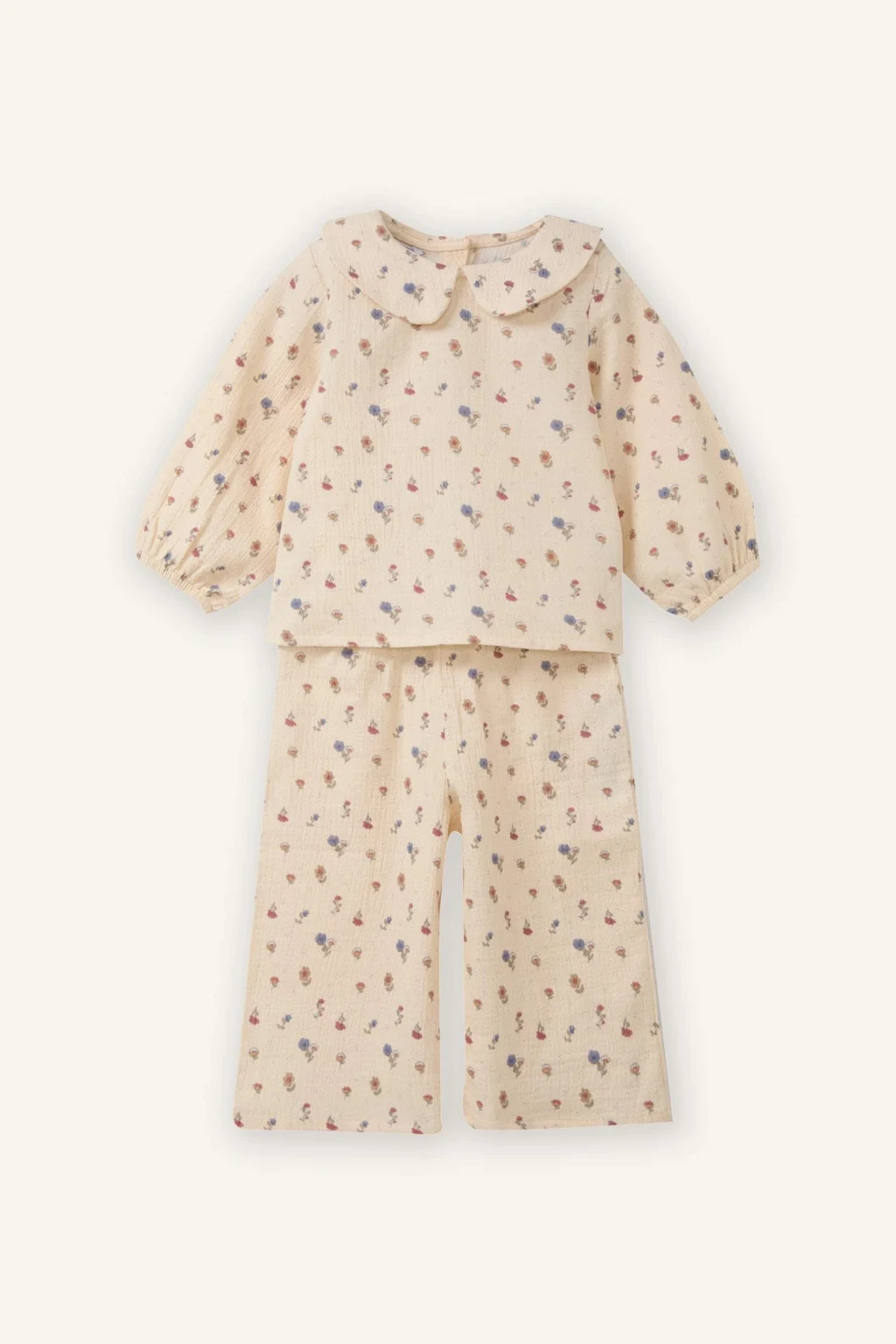 Zarif çiçek desenleriyle miniklere şık ve neşeli bir görünüm sunar. Hafif ve nefes alabilen müslin kumaşı gün boyu rahatlık sağlar. Üst ve alt parçalarının uyumlu tasarımı, hem pratik hem de konforlu bir kombin oluşturur.