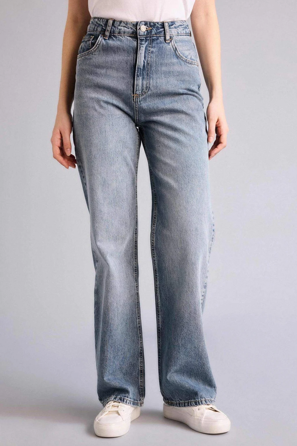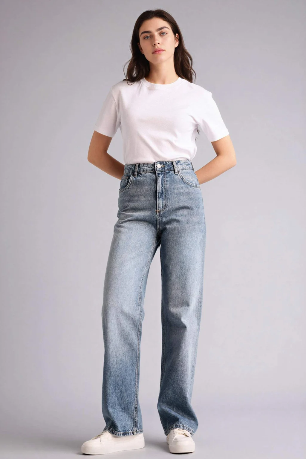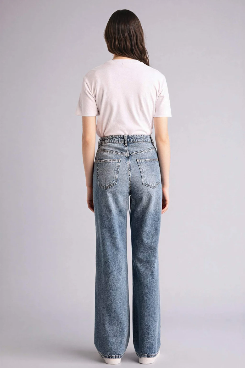 90's wide leg yüksek bel jean yıkamalı pantolon, retro tarzı ve rahat kesimiyle stilinizi öne çıkarır. Yüksek bel tasarımı ve özel yıkama detayı, modern ve şık bir görünüm sunar.