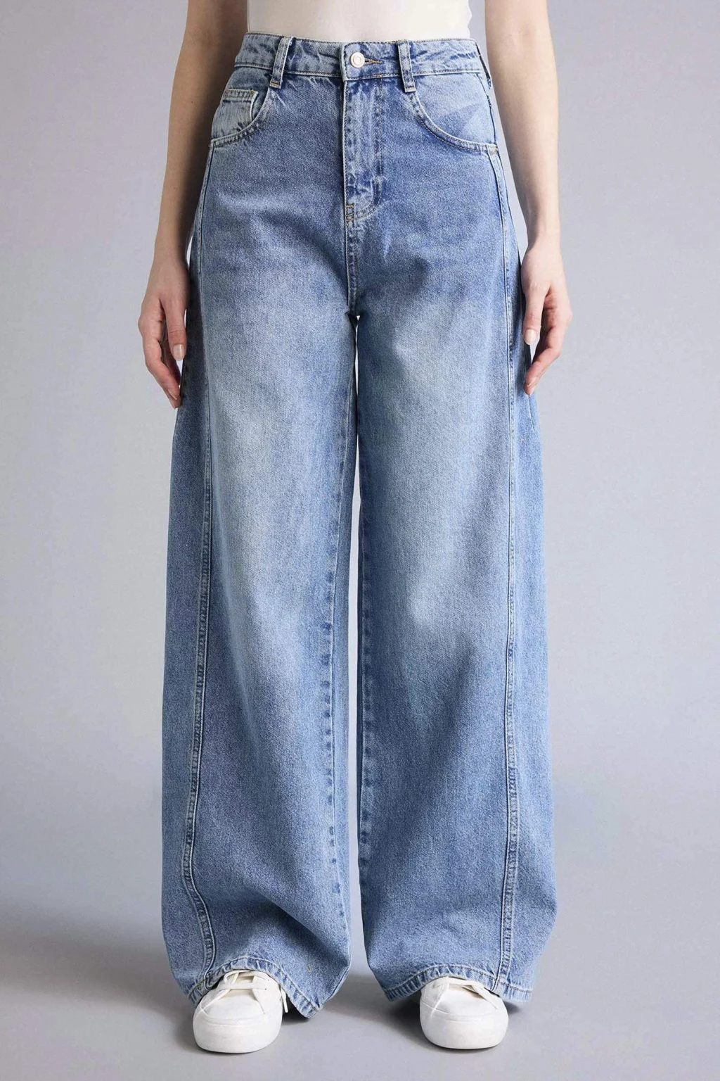 Wide leg ve normal bel kesimiyle modern bir siluet sunan yıkamalı jean pantolon, rahat ve şık bir görünüm sağlar. Dayanıklı kumaşı ve salaş yapısı sayesinde gün boyu konforlu bir kullanım sunar.