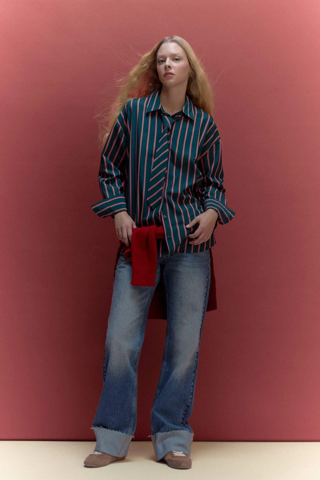 Defacto G1406AXNM82 Mavi Barrel Fıt Yüksek Bel Uzun Jean Pantolon