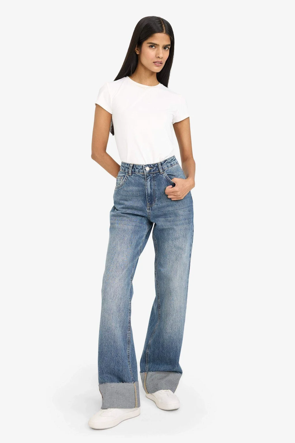 Defacto D5123AXNM82 Mavi Straight Wide Fit Yüksek Bel Geniş Bol Paça Uzun Jean Pantolon