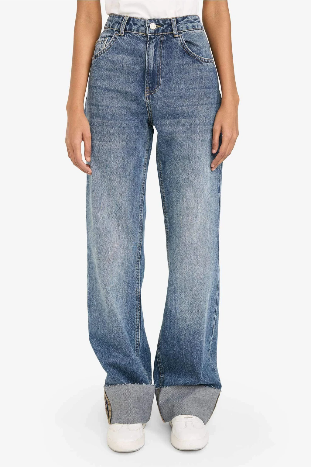 Defacto E4269AXNM39 Mavi 90's Wıde Leg Yüksek Bel Uzun Jean Yıkamalı Pantolon