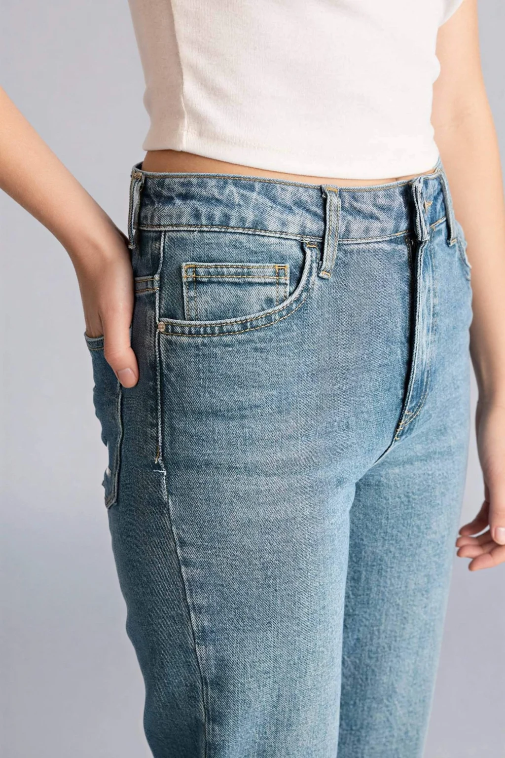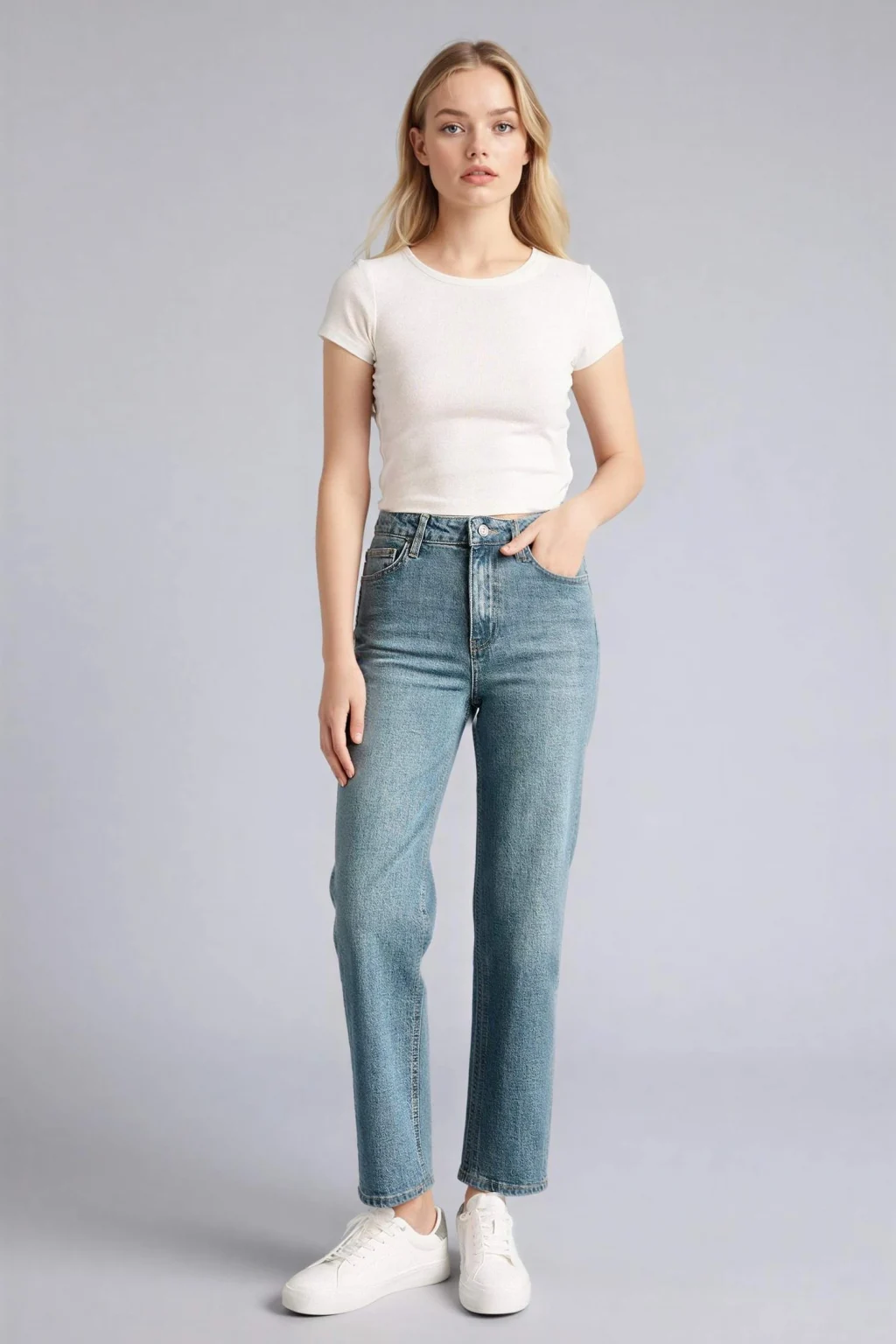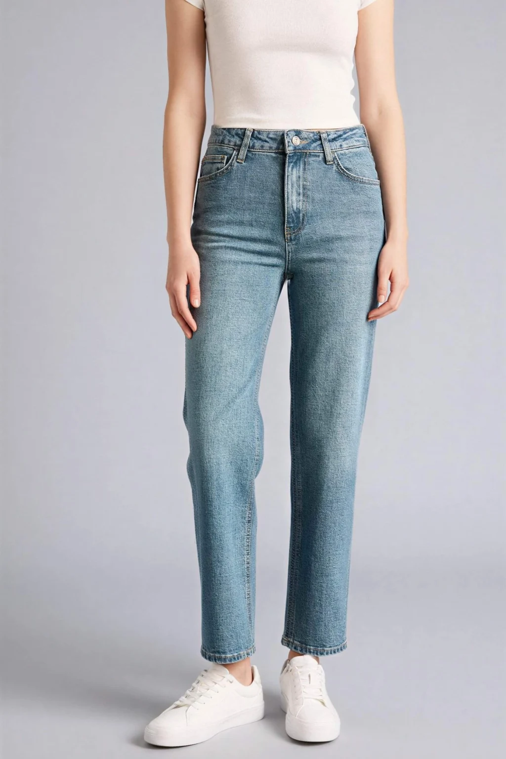 Defacto D8155AXNM28 Mavi Comfort Straıght Yüksek Bel Bilek Boy Jean Yıkamalı Pantolon