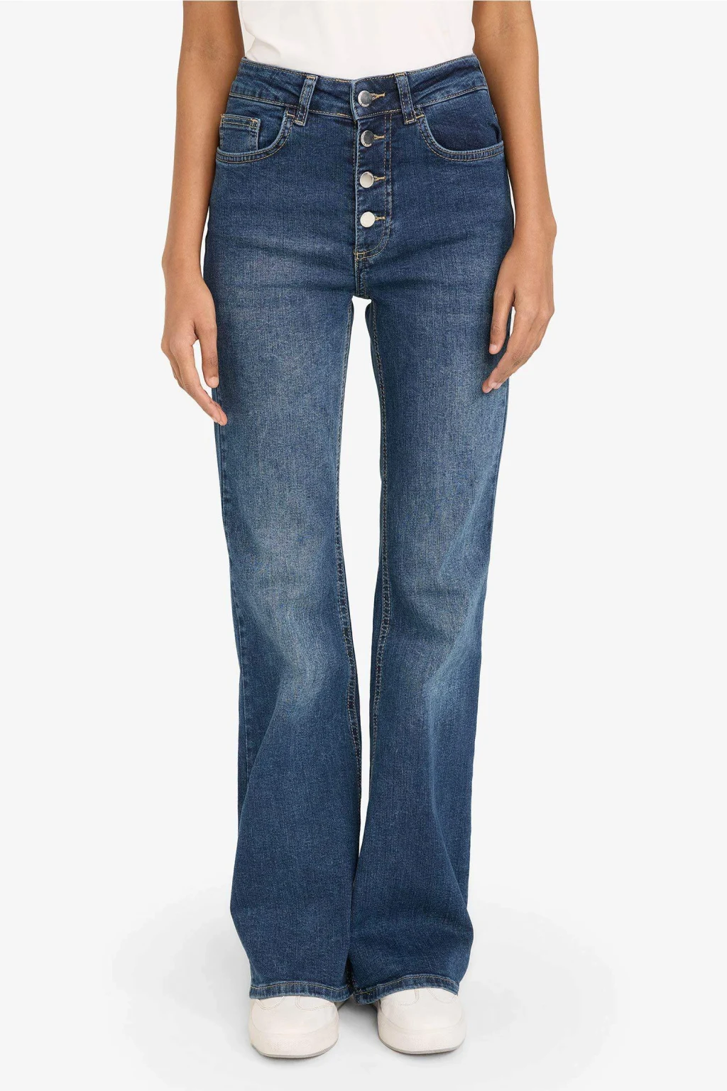 Mia Flare Fit Normal Bel Uzun Jean Yıkamalı Pantolon, klasik flare kesimi ve yıkamalı tasarımıyla modern bir stil sunar. Normal bel yapısı ve dayanıklı jean kumaşıyla gün boyu rahatlık sağlar.