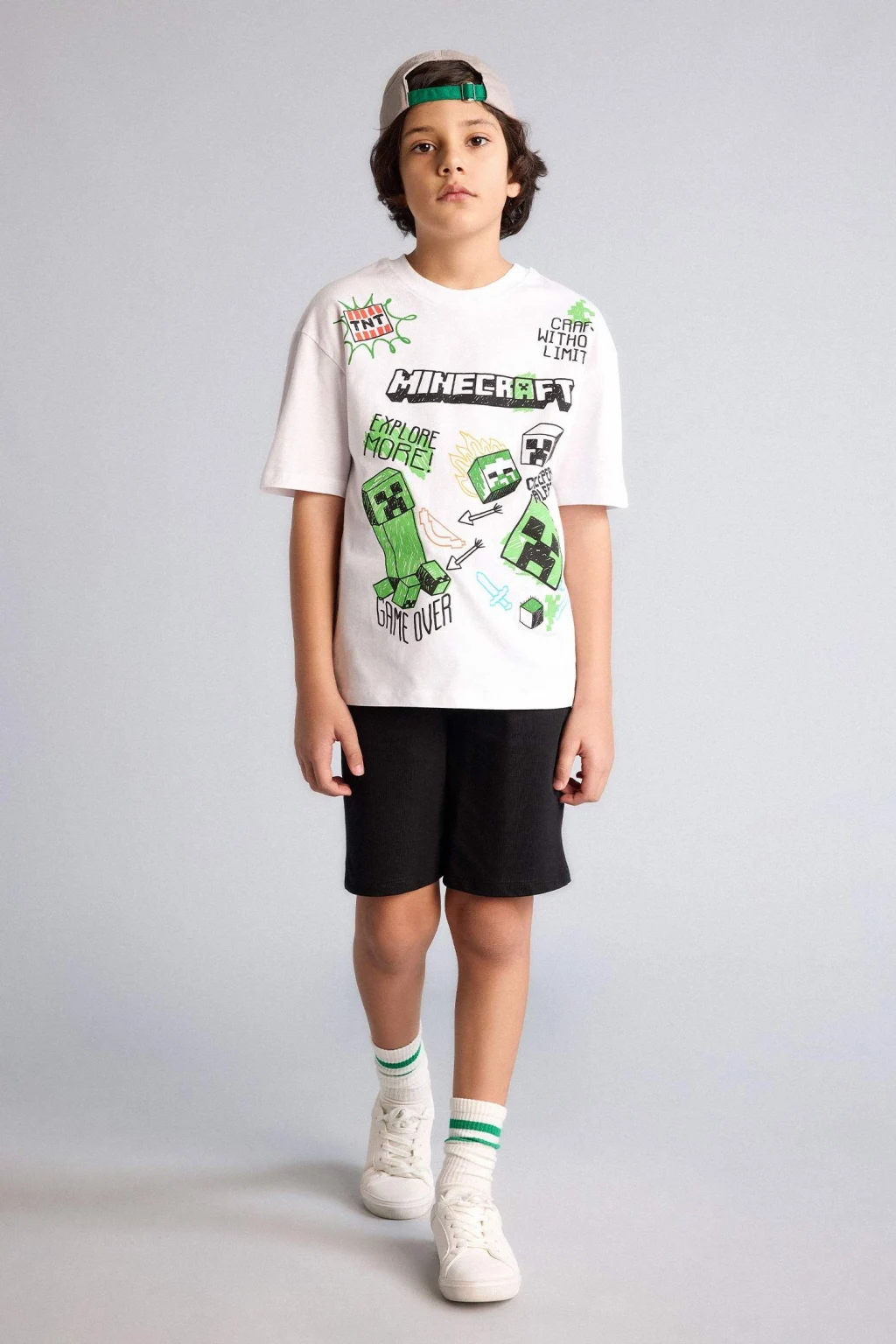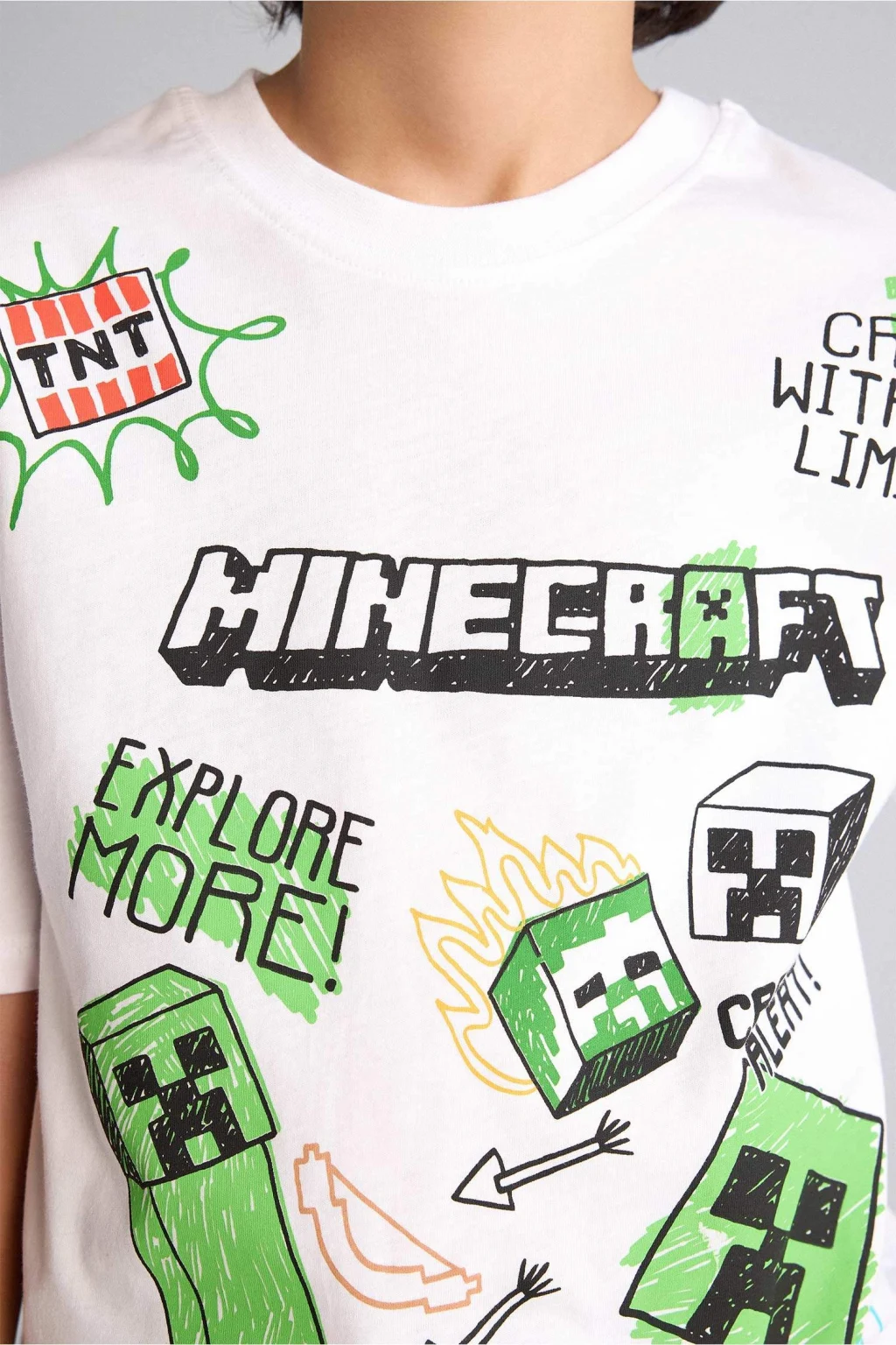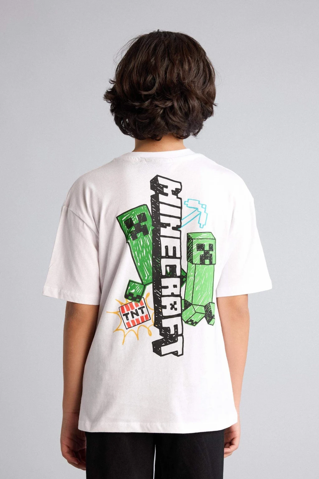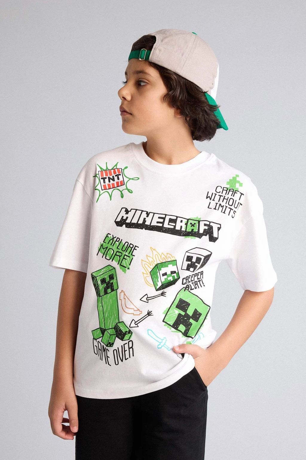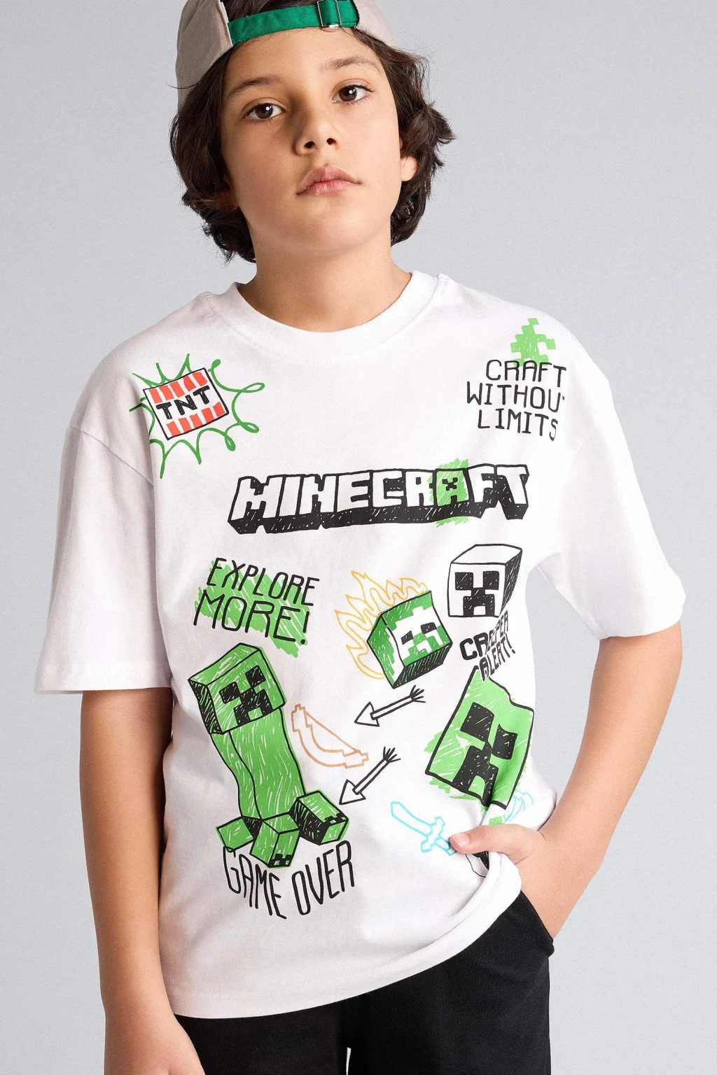 Minecraft baskılı oversize erkek çocuk tişörtü, geniş kesimiyle rahat ve özgür bir kullanım sunar. Yumuşak kumaşı ve canlı tasarımıyla günlük kombinlere eğlenceli bir dokunuş katar.
