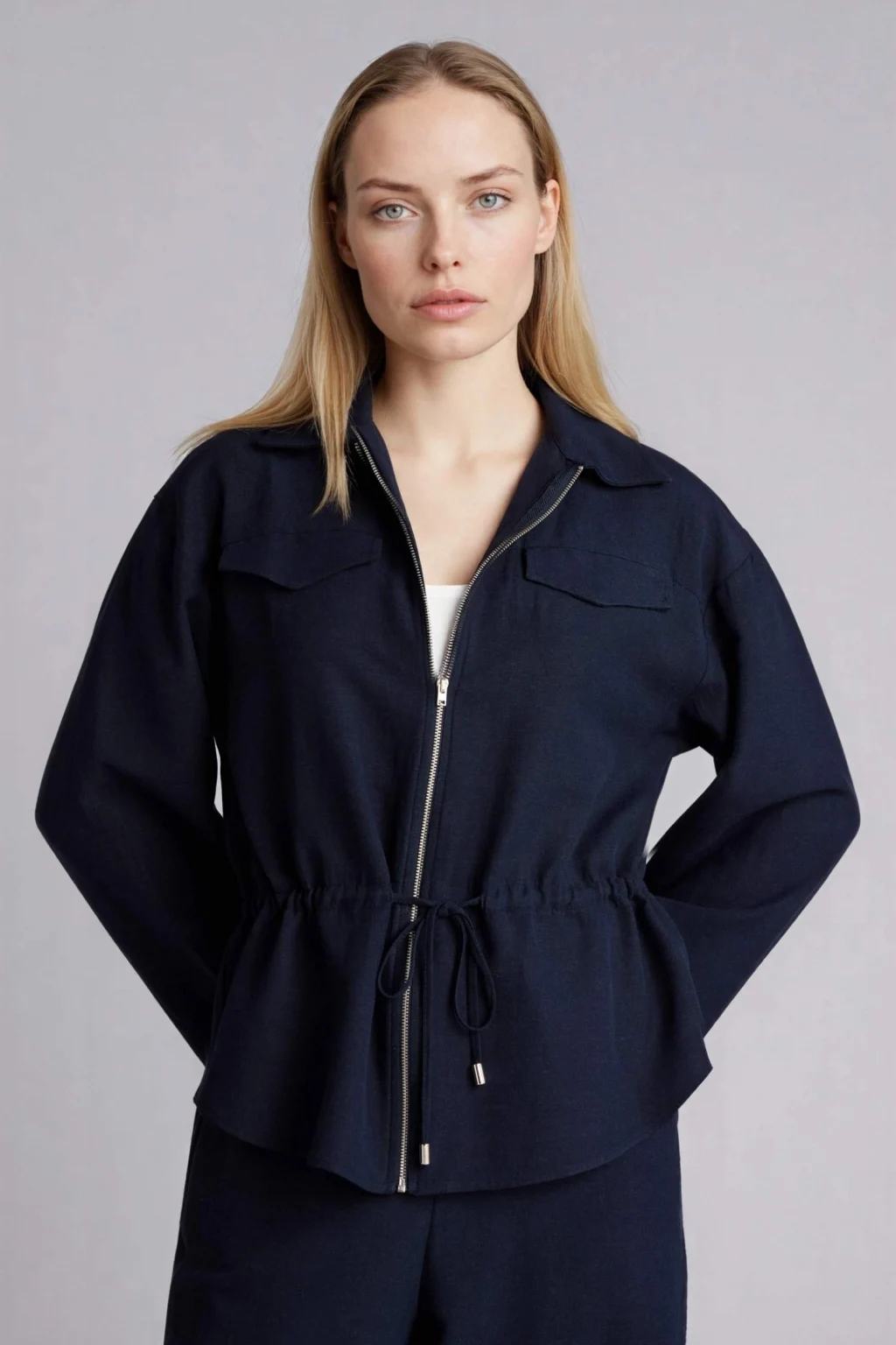 Relax Fit Keten Karışımlı Fermuarlı Gömlek, bol kesimi ve hafif keten karışımı kumaşıyla rahatlık sunar. Fermuarlı tasarımı, modern bir dokunuş katarak günlük ve smart-casual kombinlerinizi tamamlar.