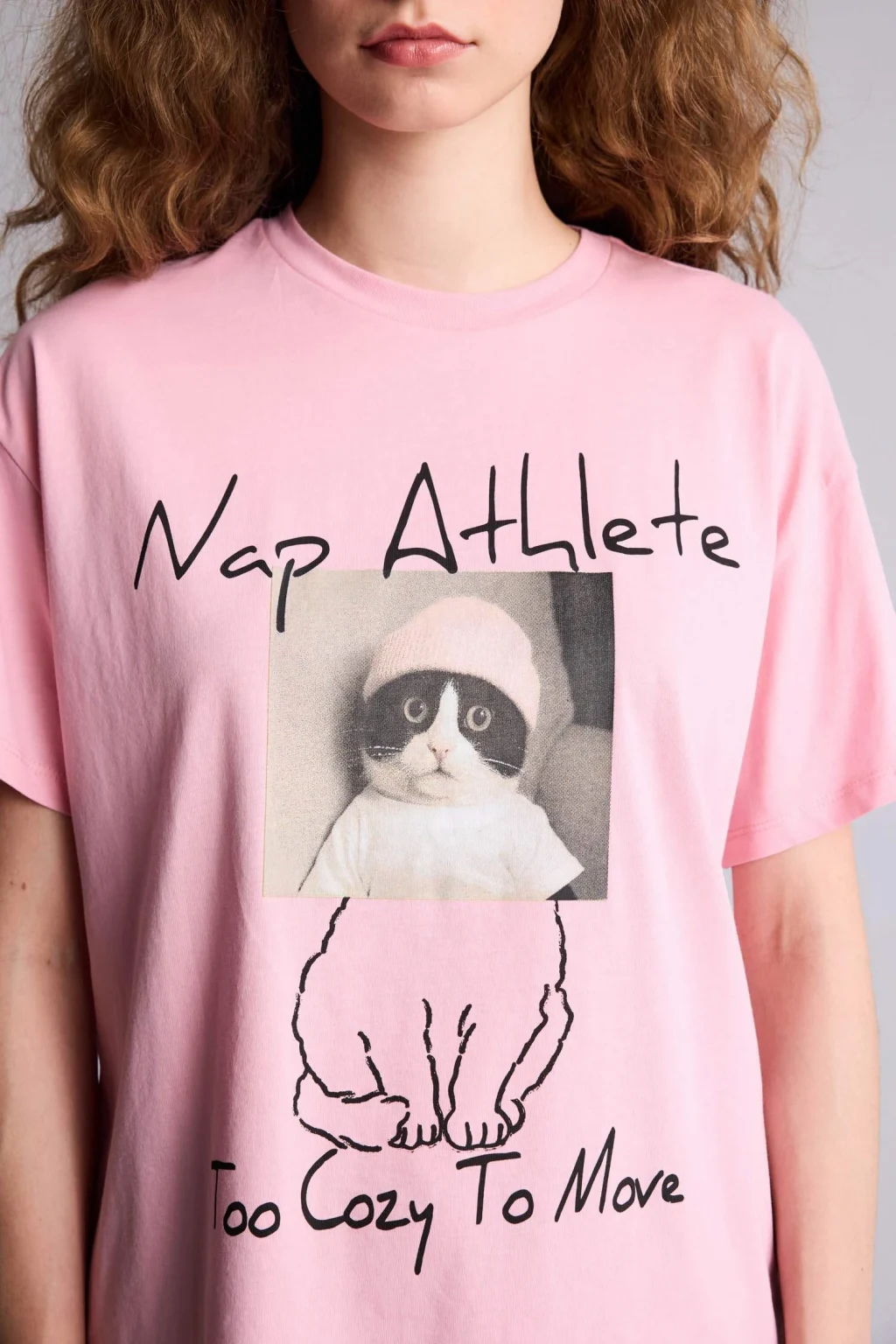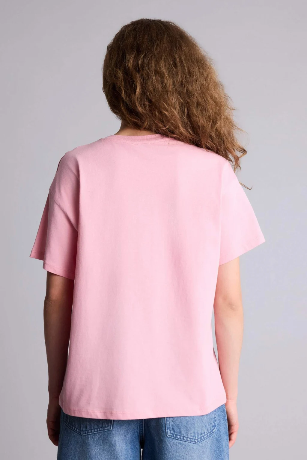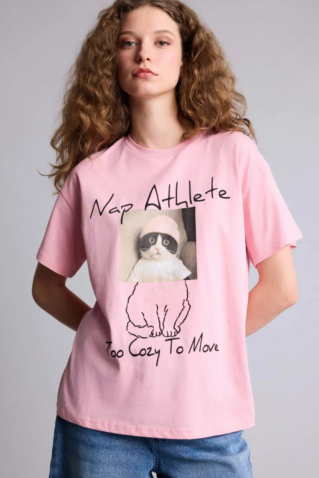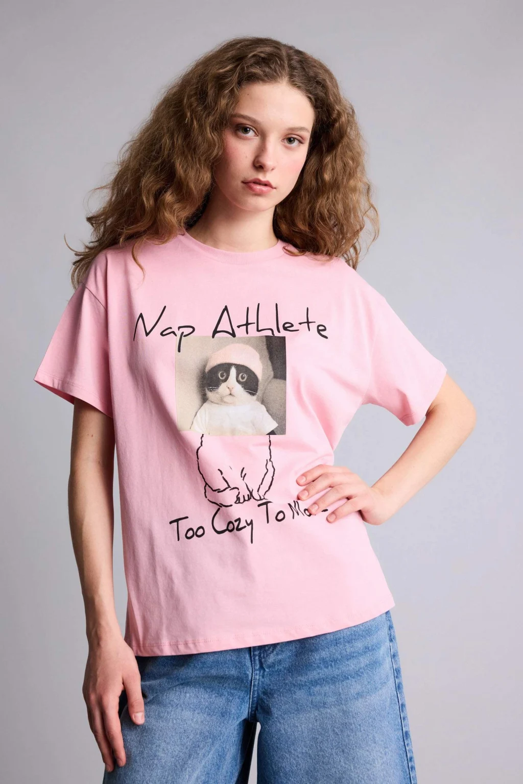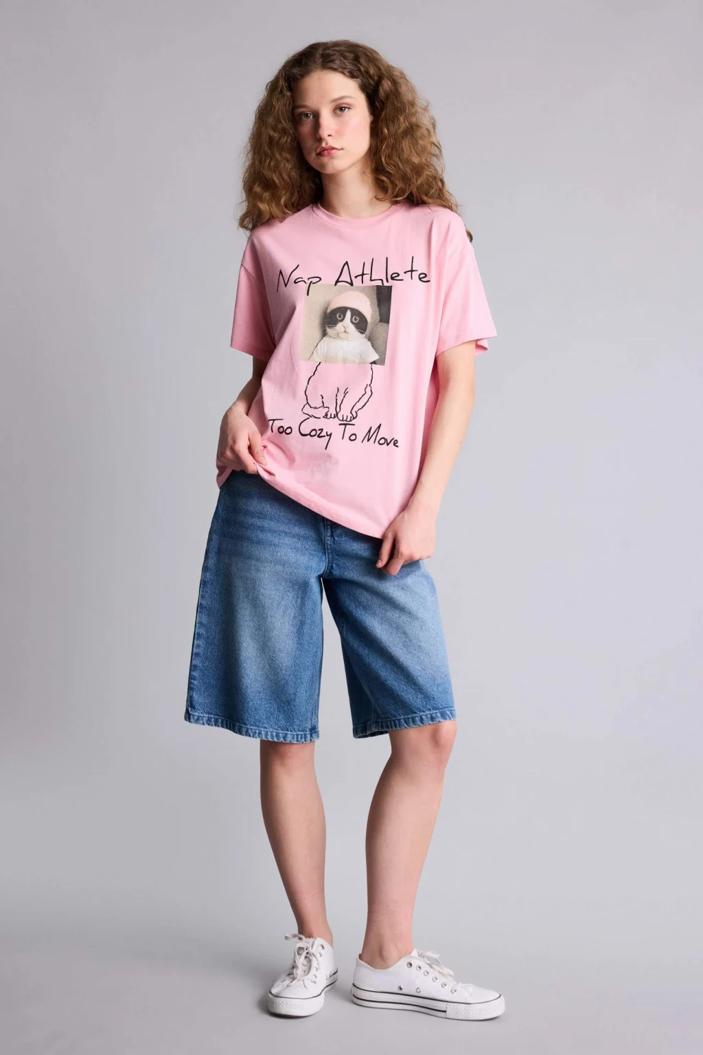 Defacto G9004AXPN636 Pembe Oversıze Bisiklet Yaka Baskılı Kısa Kollu Tişört