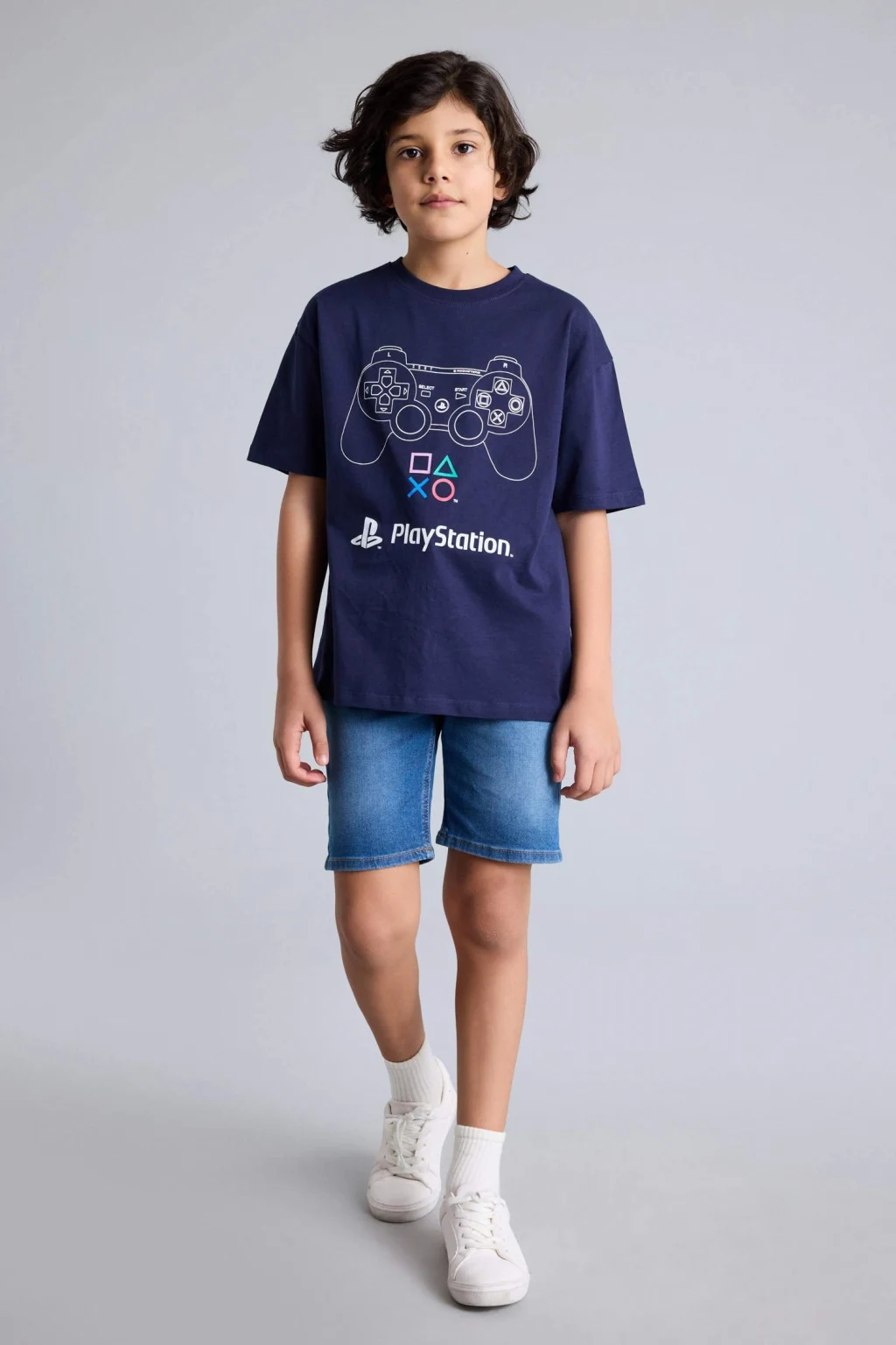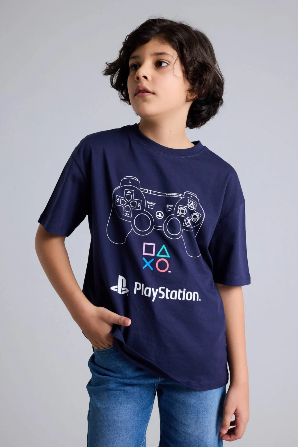 PlayStation baskılı oversize tasarımıyla öne çıkan erkek çocuk tişört, modern ve eğlenceli bir görünüm sunar. Hafif ve yumuşak kumaşı, günlük kullanımda rahatlık sağlar.