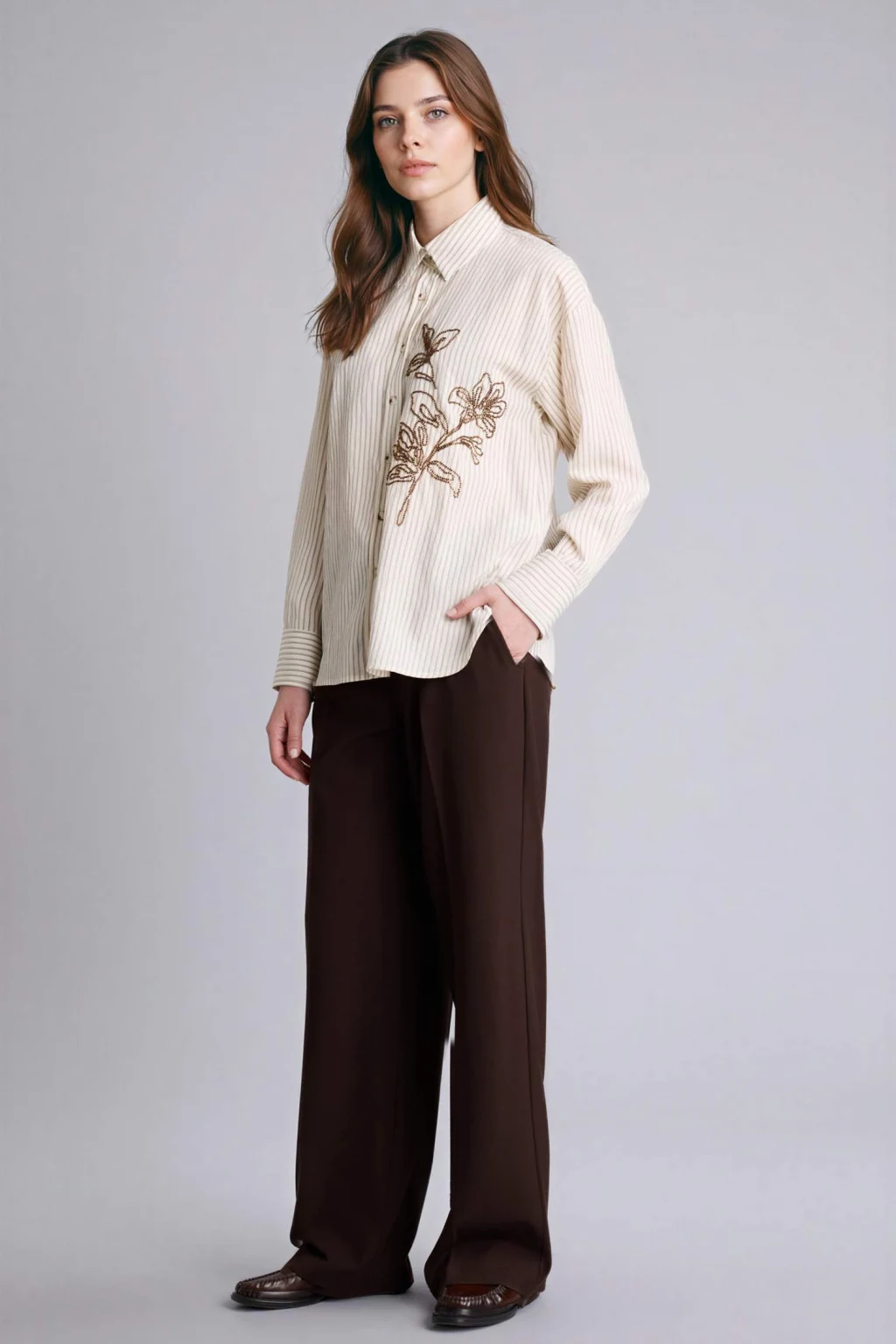 Defacto G0143AXBN320 Kahve Relax Fıt Gömlek Yaka Flamlı Pamuk Uzun Kollu Gömlek