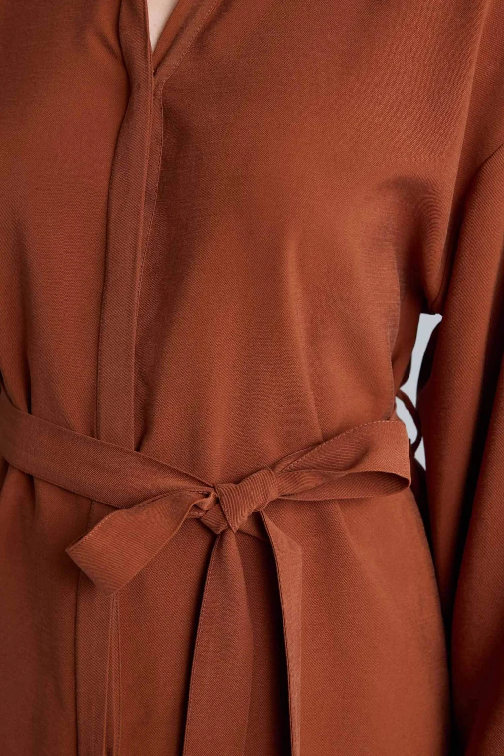 LCW Comfort Kahverengi Bağlama Detaylı Büzgülü Kadın Gömlek