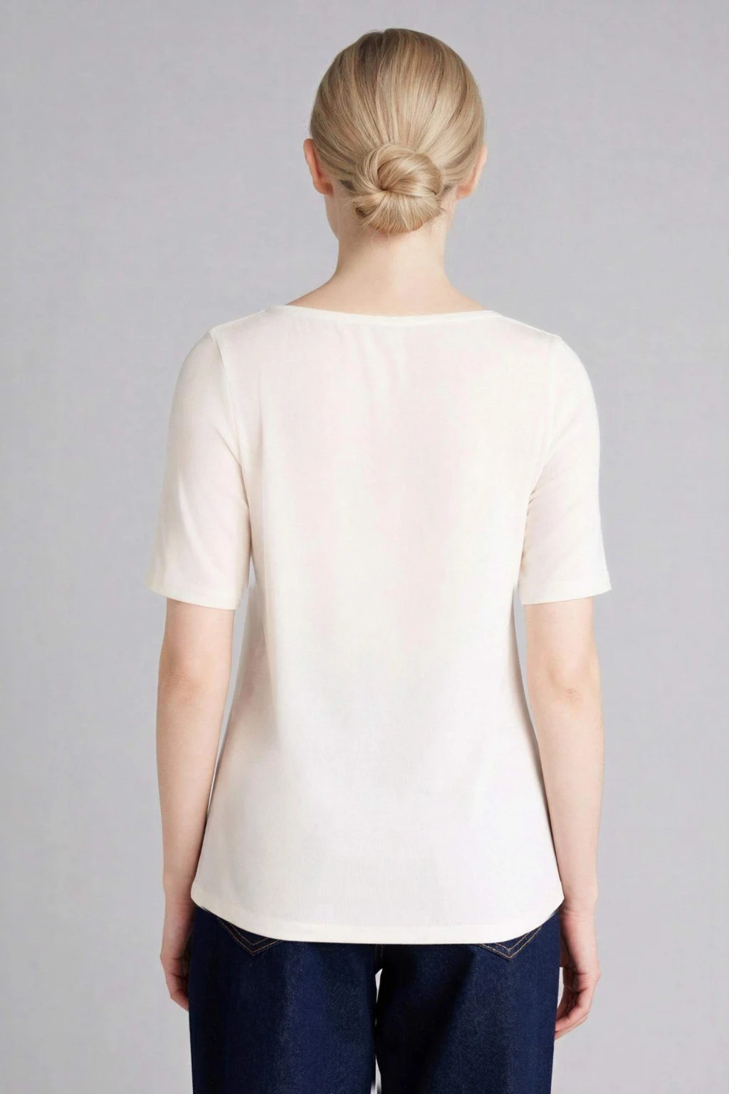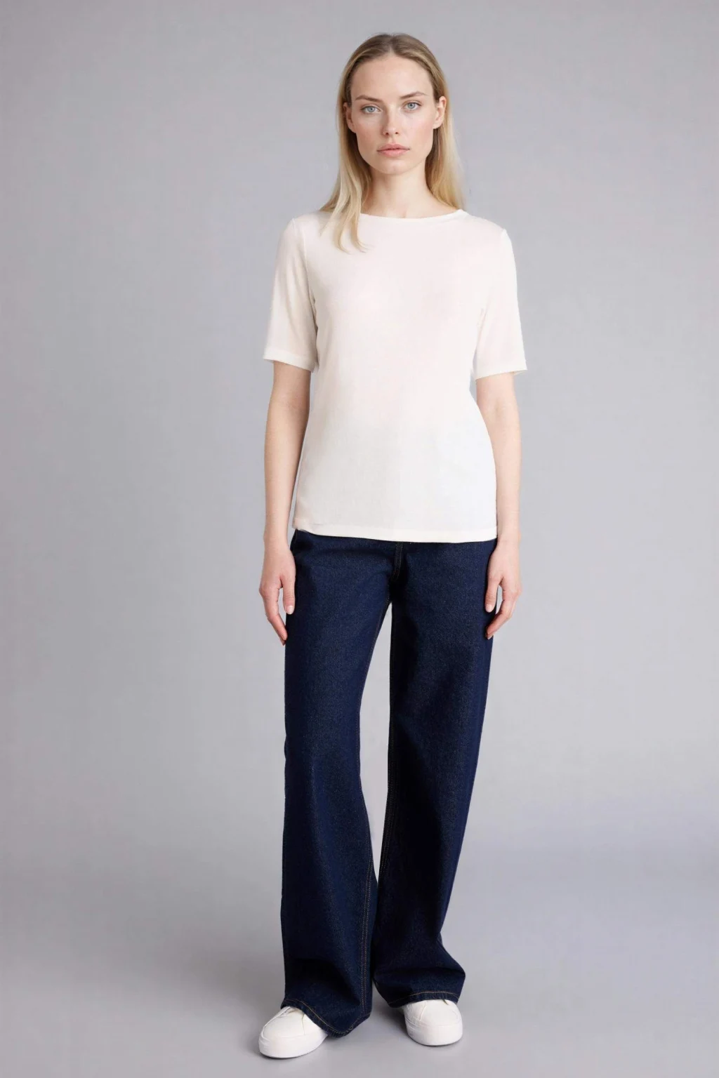 Regular Fit Kayık Yaka Ribana Tişört, rahat kesimi ve esnek ribana kumaşıyla gün boyu konfor sağlar. Şık kayık yaka detayı, günlük kombinlerinize zarif bir dokunuş katar.