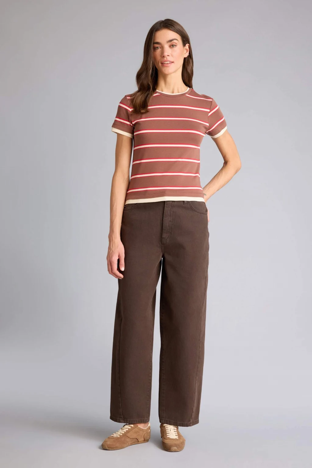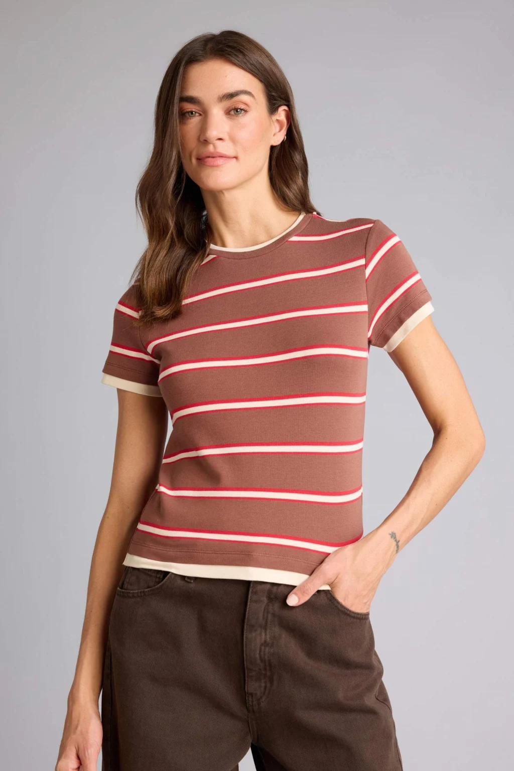 Defacto G9545AXBN525 Kahve Regular Fıt Bisiklet Yaka Ribana Kısa Kollu Tişört