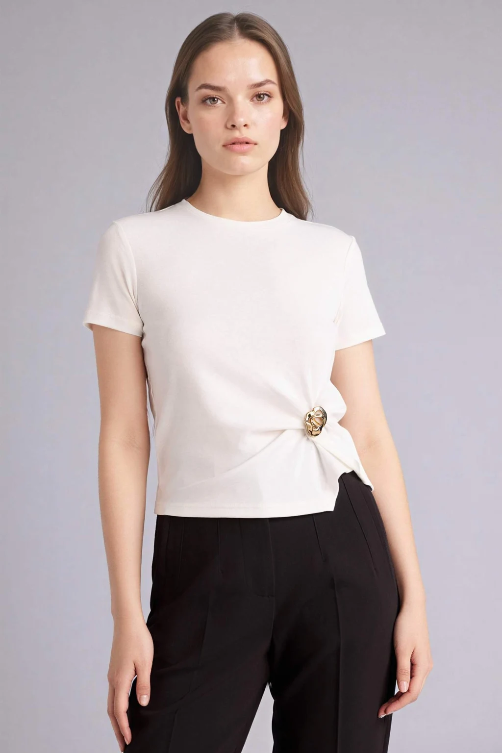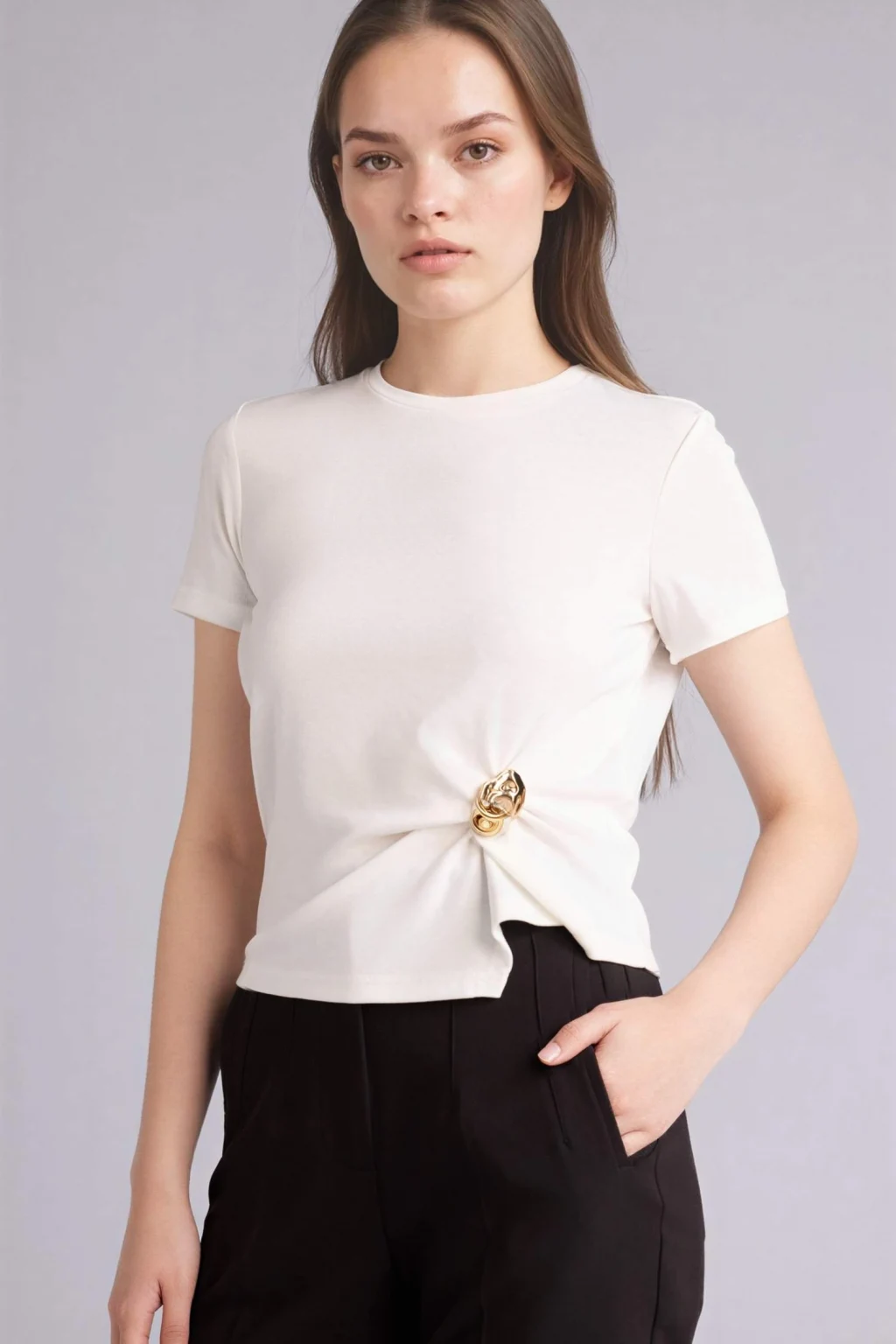 Slim Fit Aksesuar Detaylı Ribana Tişört vücuda oturan kesimi ve şık aksesuar detaylarıyla modern bir tarz sunar. Yumuşak ribana kumaşı gün boyu konfor sağlar.