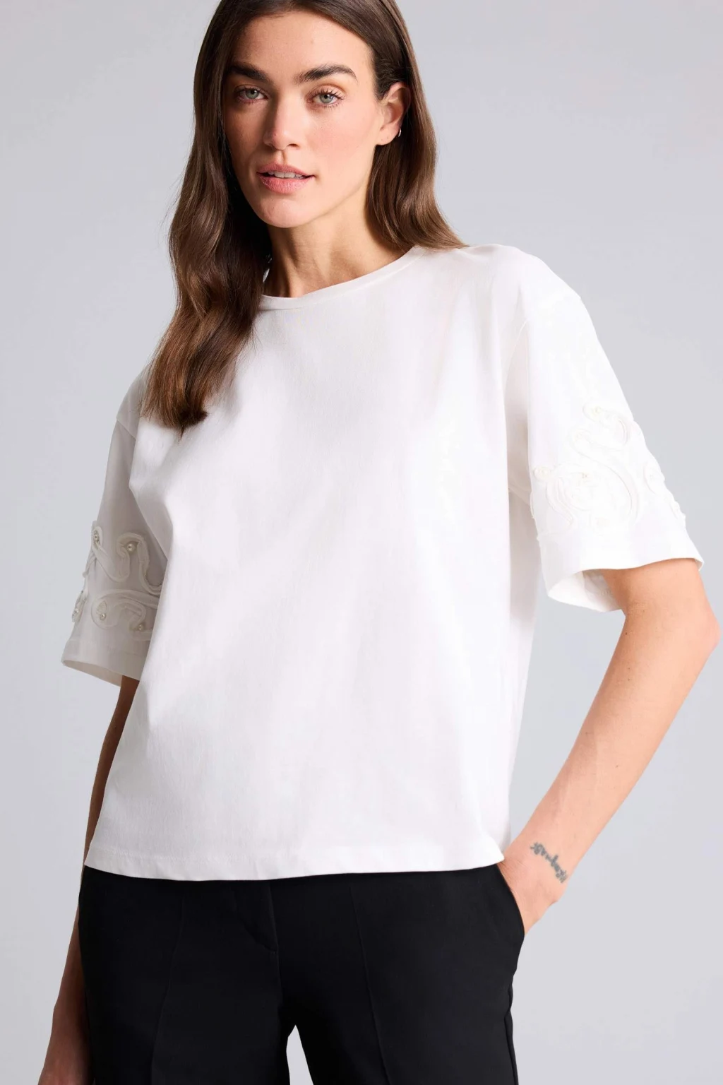 Defacto G9551AXER105 Ekru Slım Fıt Aksesuar Detaylı Ribana Tişört