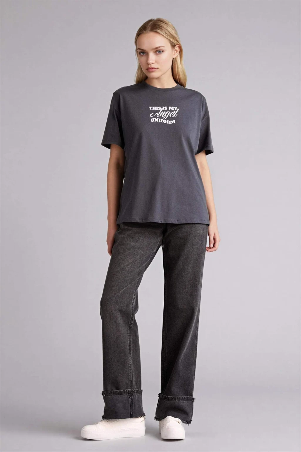 Oversize sırt baskılı tişört, rahat kesimi ve dikkat çekici sırt baskısıyla günlük stilinize modern bir dokunuş katar. Konforlu yapısıyla gün boyu rahat kullanım sağlar.