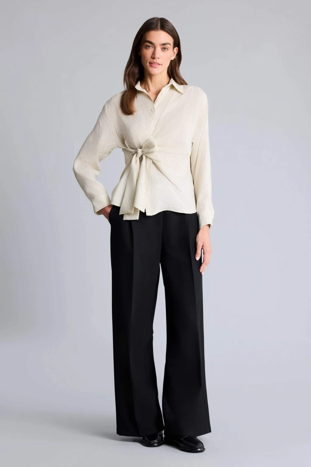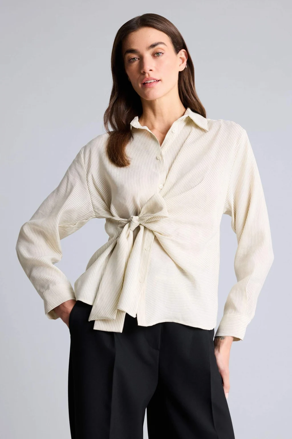 Bol kesimi ve hafif tencel kumaşıyla Oversıze Çizgili Tencel Gömlek, rahatlığı ve şıklığı bir arada sunar. Zarif çizgili deseniyle günlük ve ofis kombinlerinizde modern bir stil yaratır.