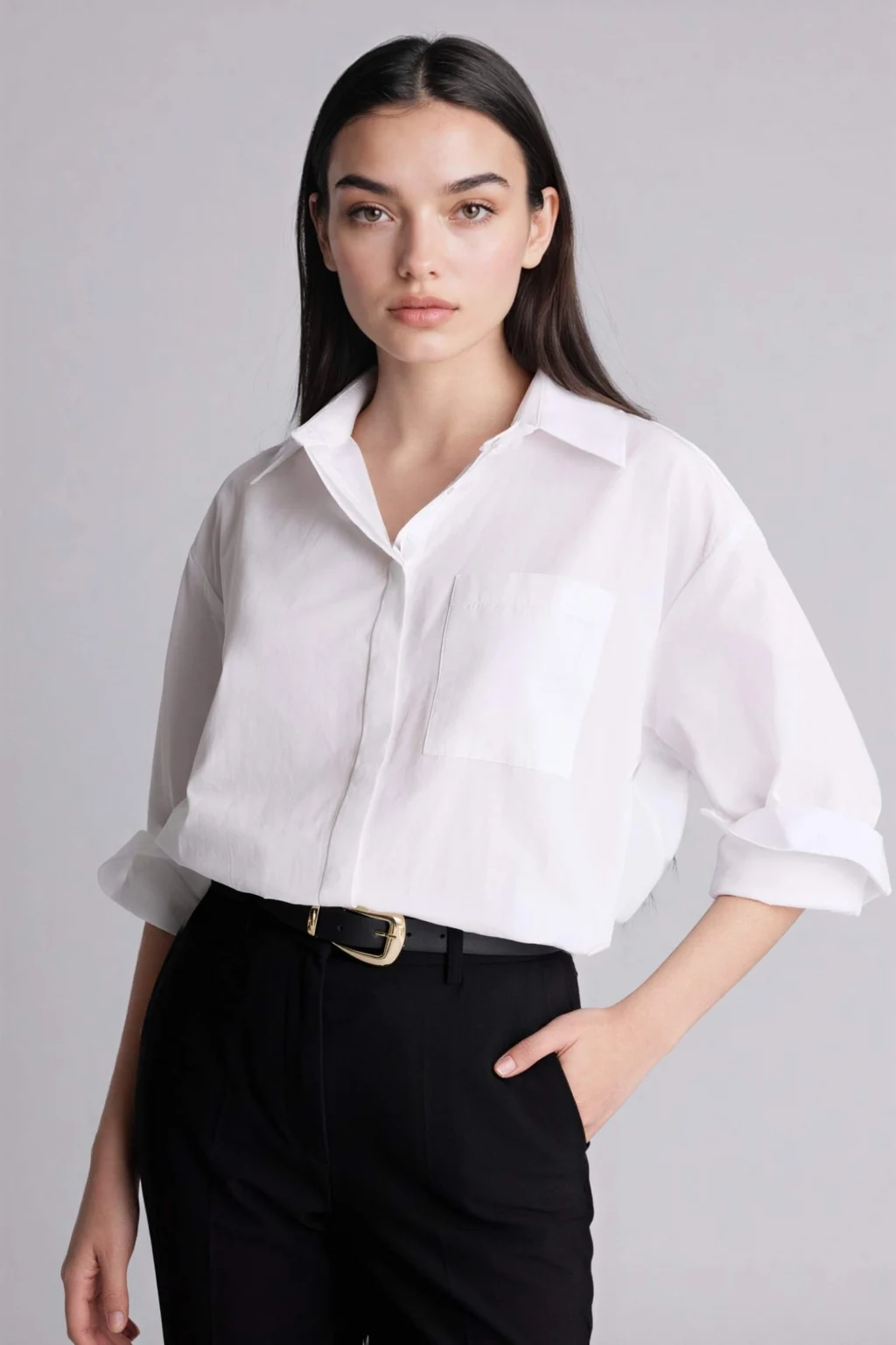 Defacto B5419AXWT18 Beyaz Oversıze Gömlek Yaka Brode Uzun Kollu Gömlek
