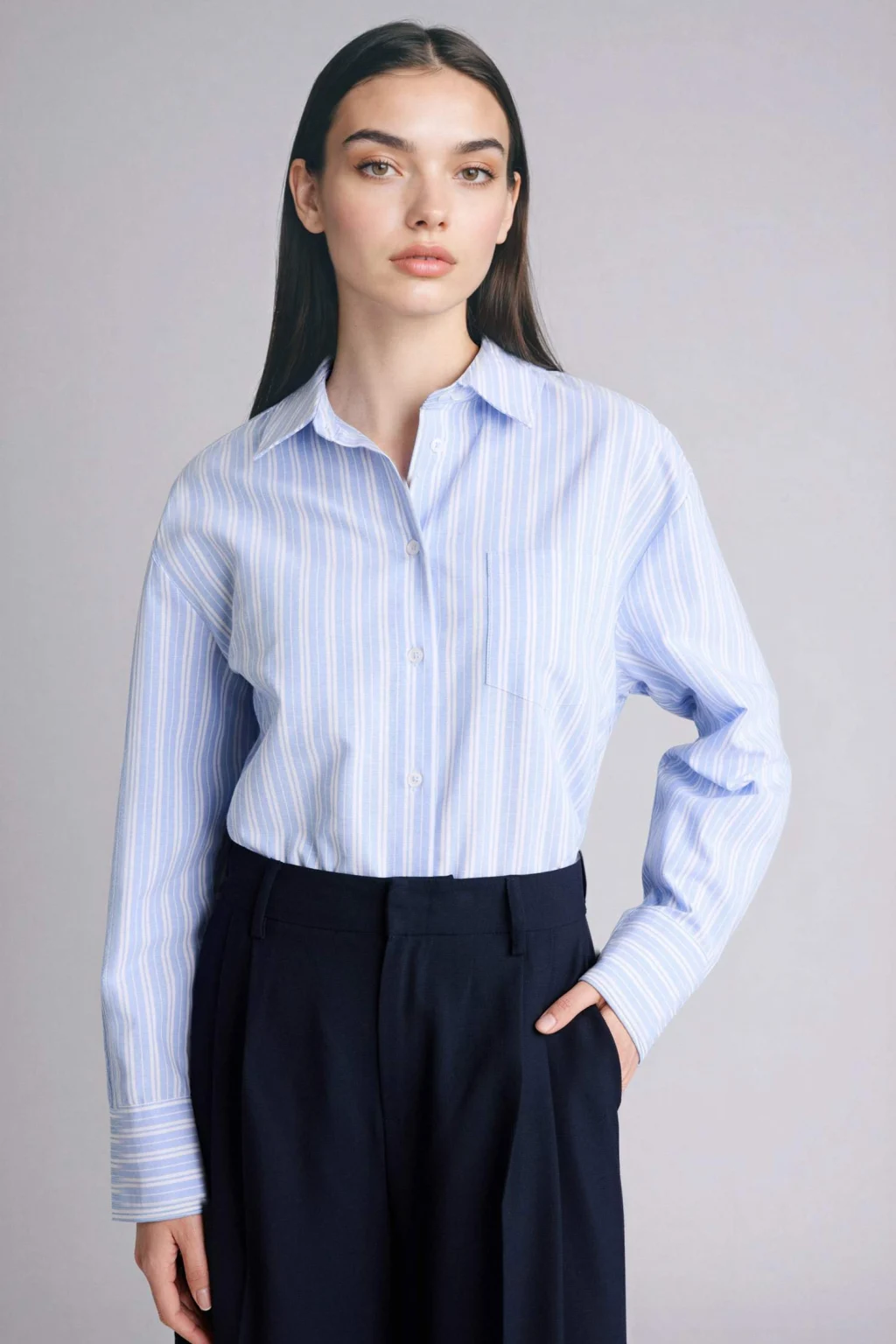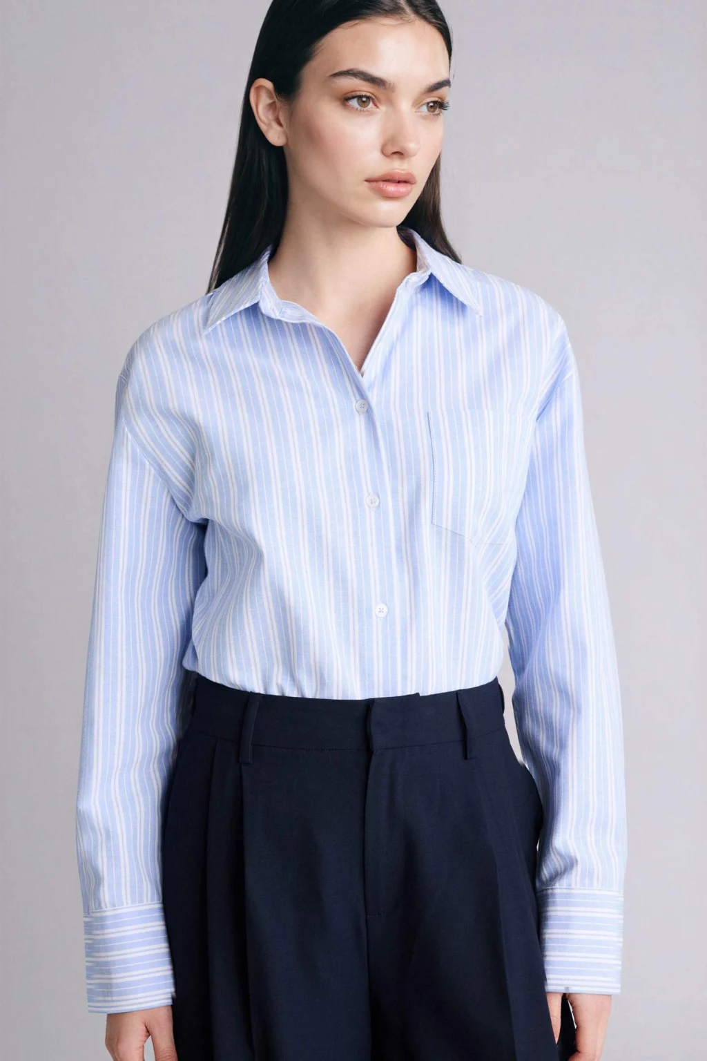 Oversize Çizgili Oxford Gömlek, rahat kesimi ve klasik çizgi deseniyle günlük stilinize modern bir dokunuş katar. Oversize kalıbı sayesinde katmanlı kombinlerde rahatlıkla kullanılabilir ve özgür bir hareket alanı sunar. Hem şık hem de casual görünümler için ideal bir tercih olur.