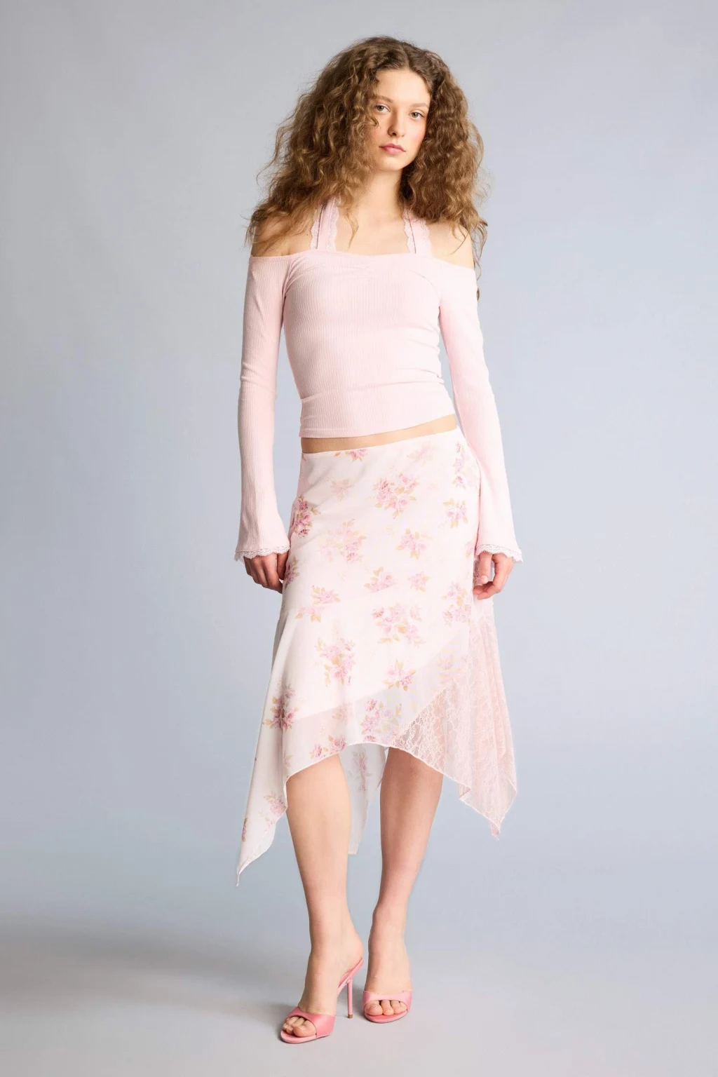 Yetişkin kadınlar için örme, uzun kollu pembe tişört. Fitted kalıp, fitilli kaşkorse kumaşından üretilmiştir. Tüm mevsimlerde kullanıma uygundur. Şık halter yaka tasarımı ile öne çıkar. Temel bir parça olan bu tişört, gardırobunuzun vazgeçilmezi olmaya aday.