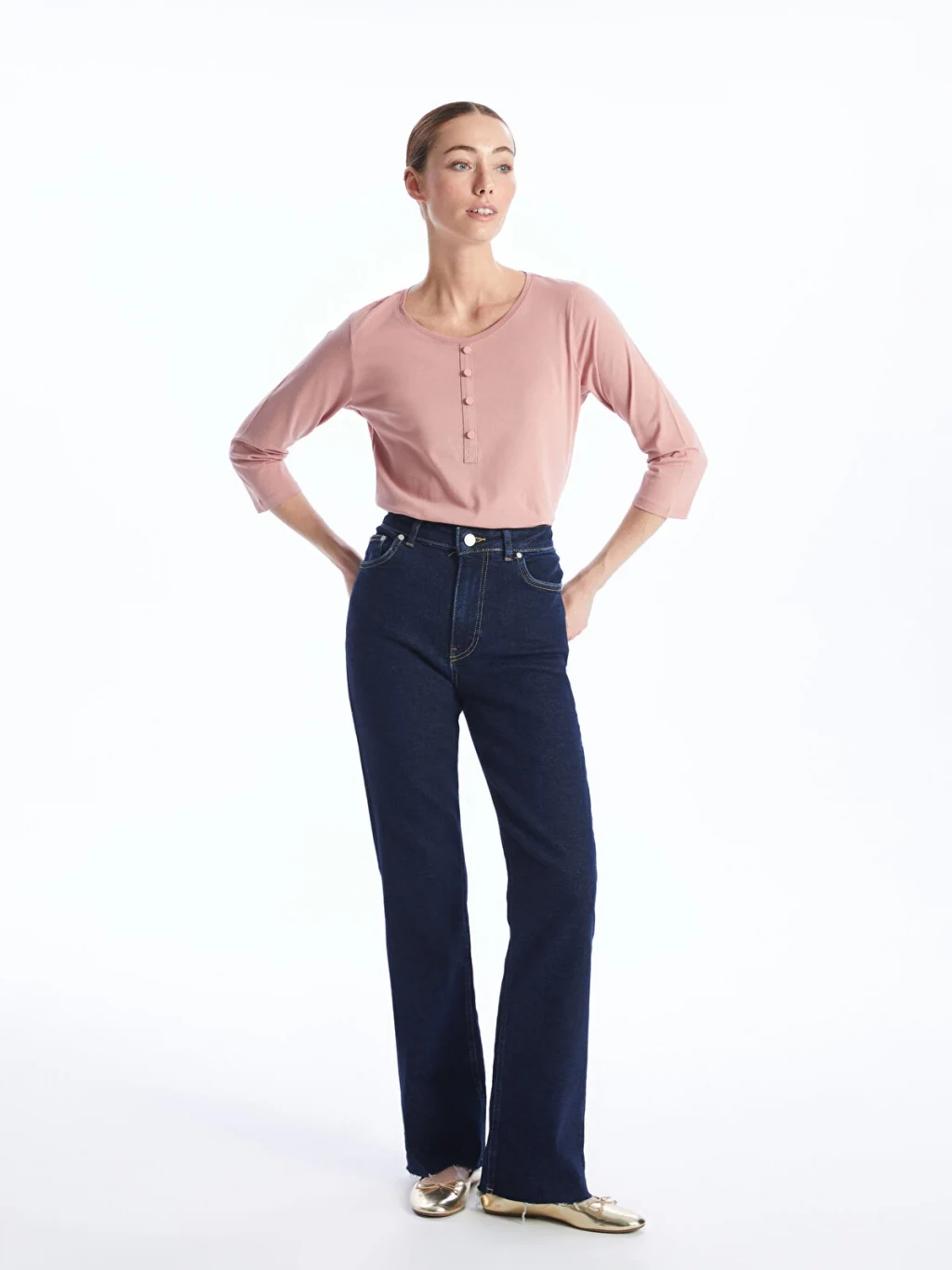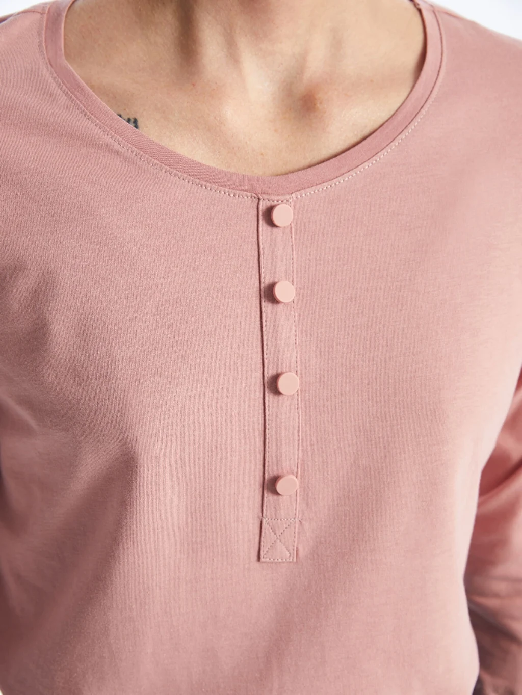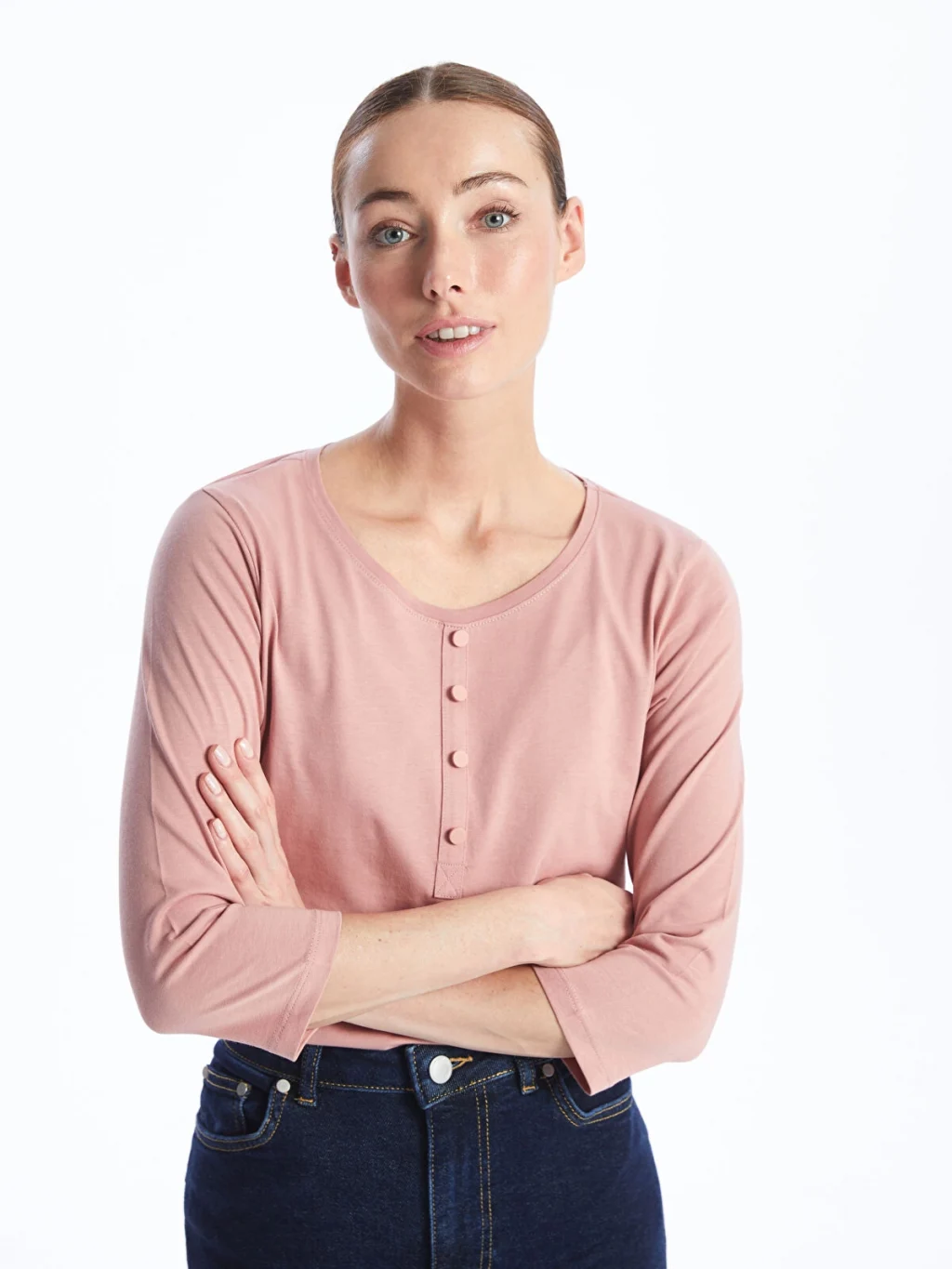 Kadın bisiklet yaka düz bluz, ön kısmında bulunan şık düğme detayları ile göz alıcı bir görünüm sunar. Yumuşak penye kumaşı ise gün boyu rahatlık ve hafiflik sağlar, her türlü etkinlik için ideal bir seçenektir.