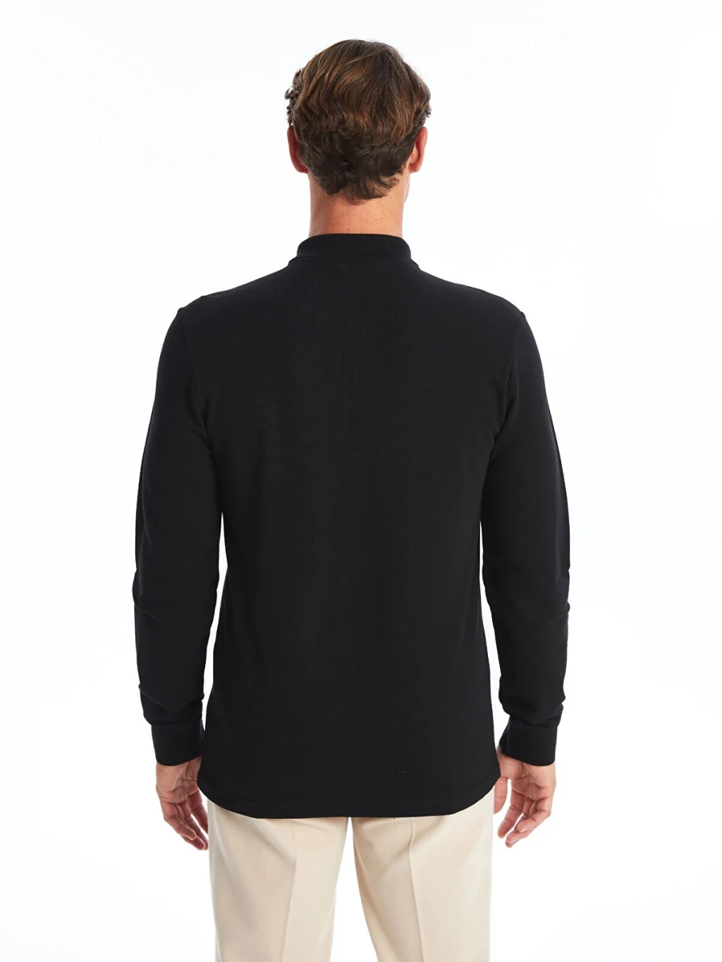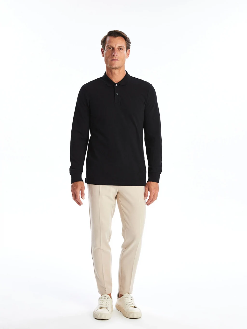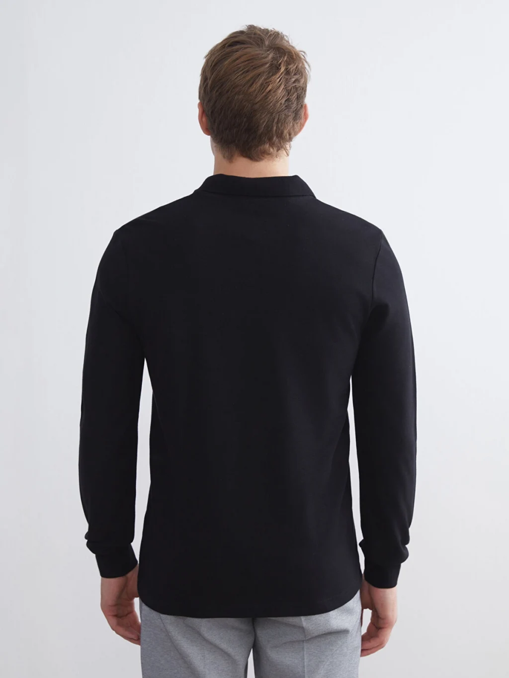 Polo yakalı ve uzun kollu erkek tişört, %100 pamuklu pike kumaştan üretilmiştir. Düğme kapamalıdır.