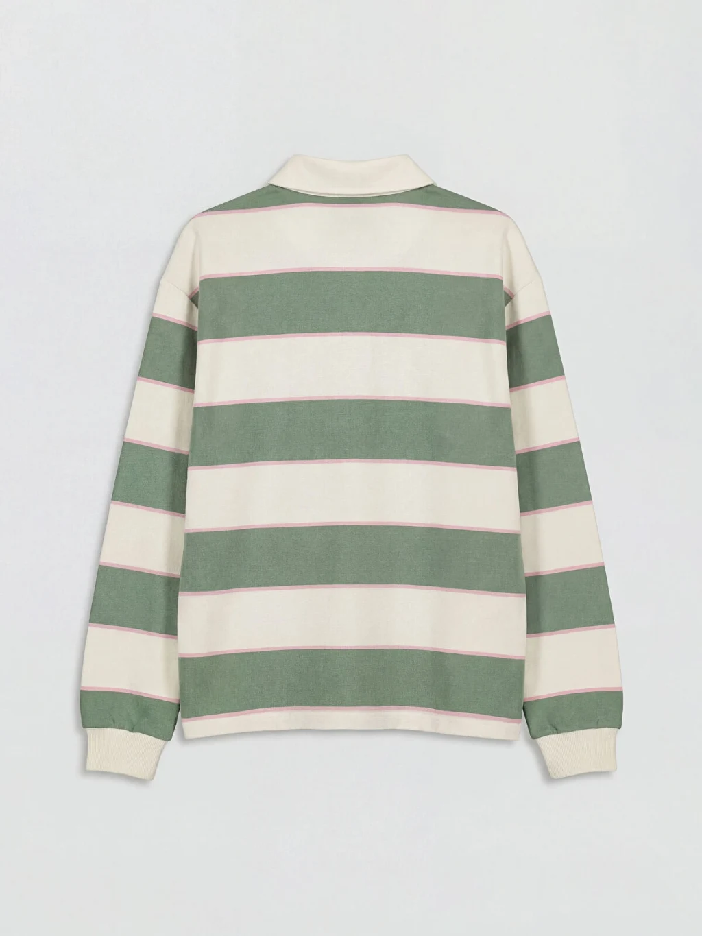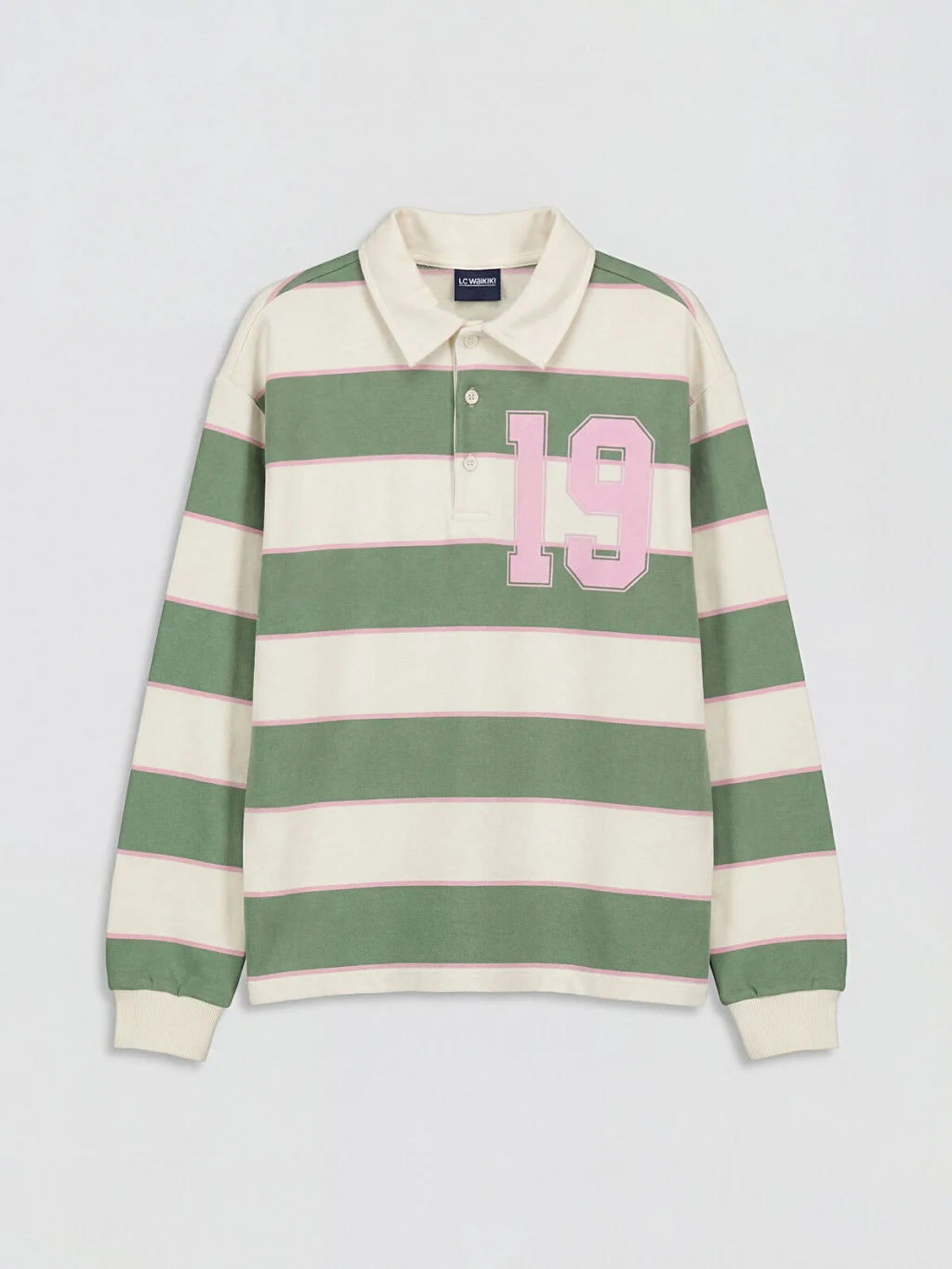 Polo yakalı, uzun kollu ve baskılı kız çocuk tişört, çizgili desene sahiptir ve önü düğme kapamalıdır.