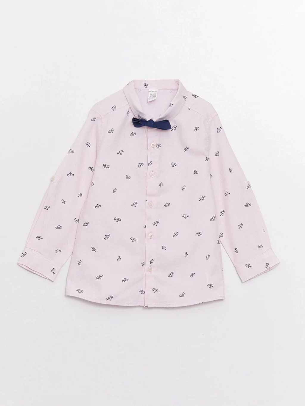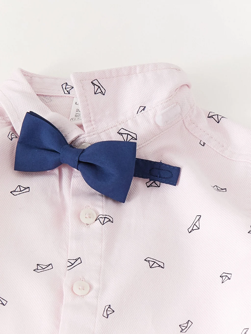 Sevimli baskılarıyla erkek bebek kombinlerine hoş bir hava katan gömlek modeli, cırt cırtlı papyonu ile özel günlere eşlik etmeye aday. %100 pamuk dokulu yumuşak kumaşıyla nefes alan ve terletmeyen gömlek modeli, konfor ve hareket özgürlüğü sunar.