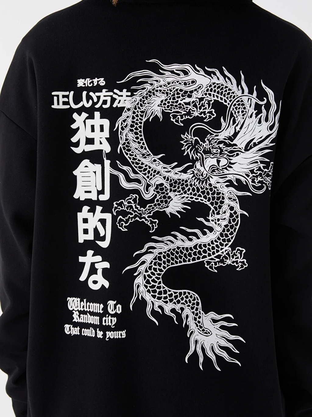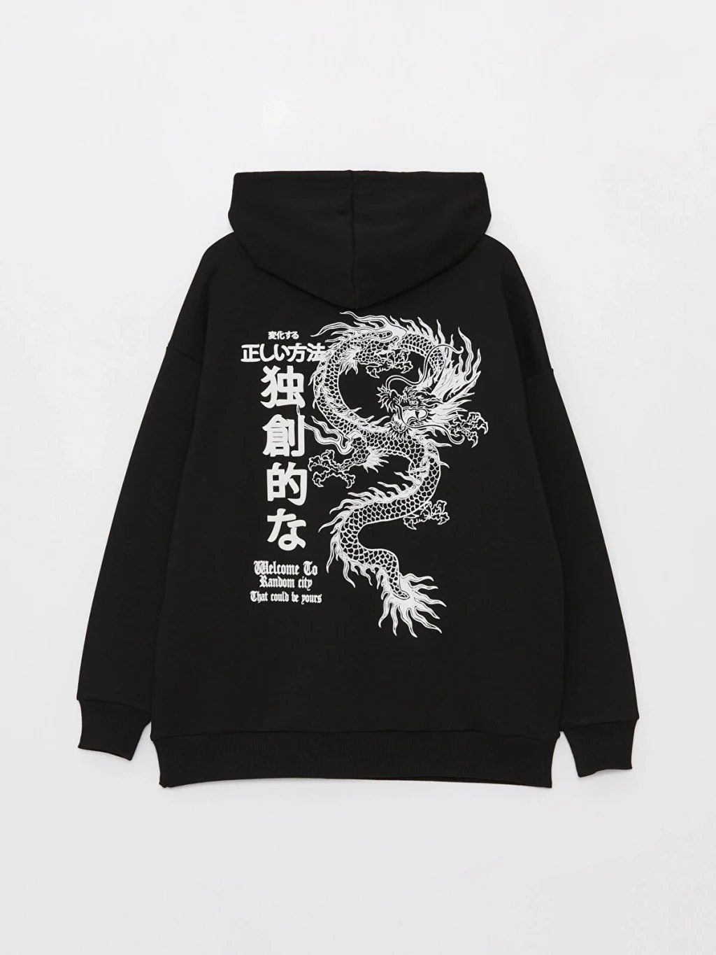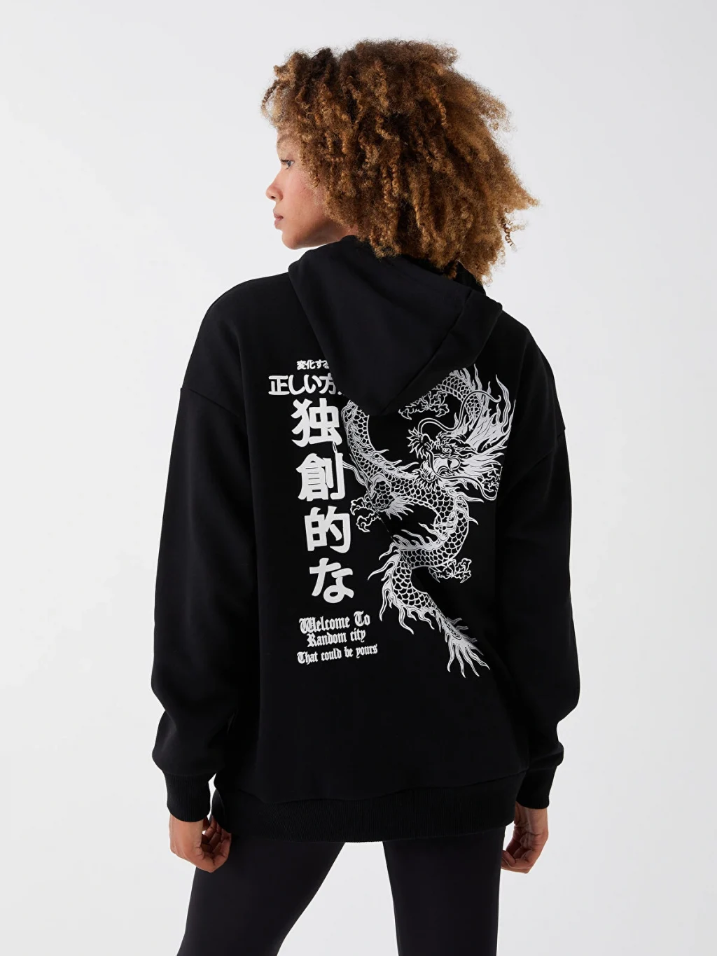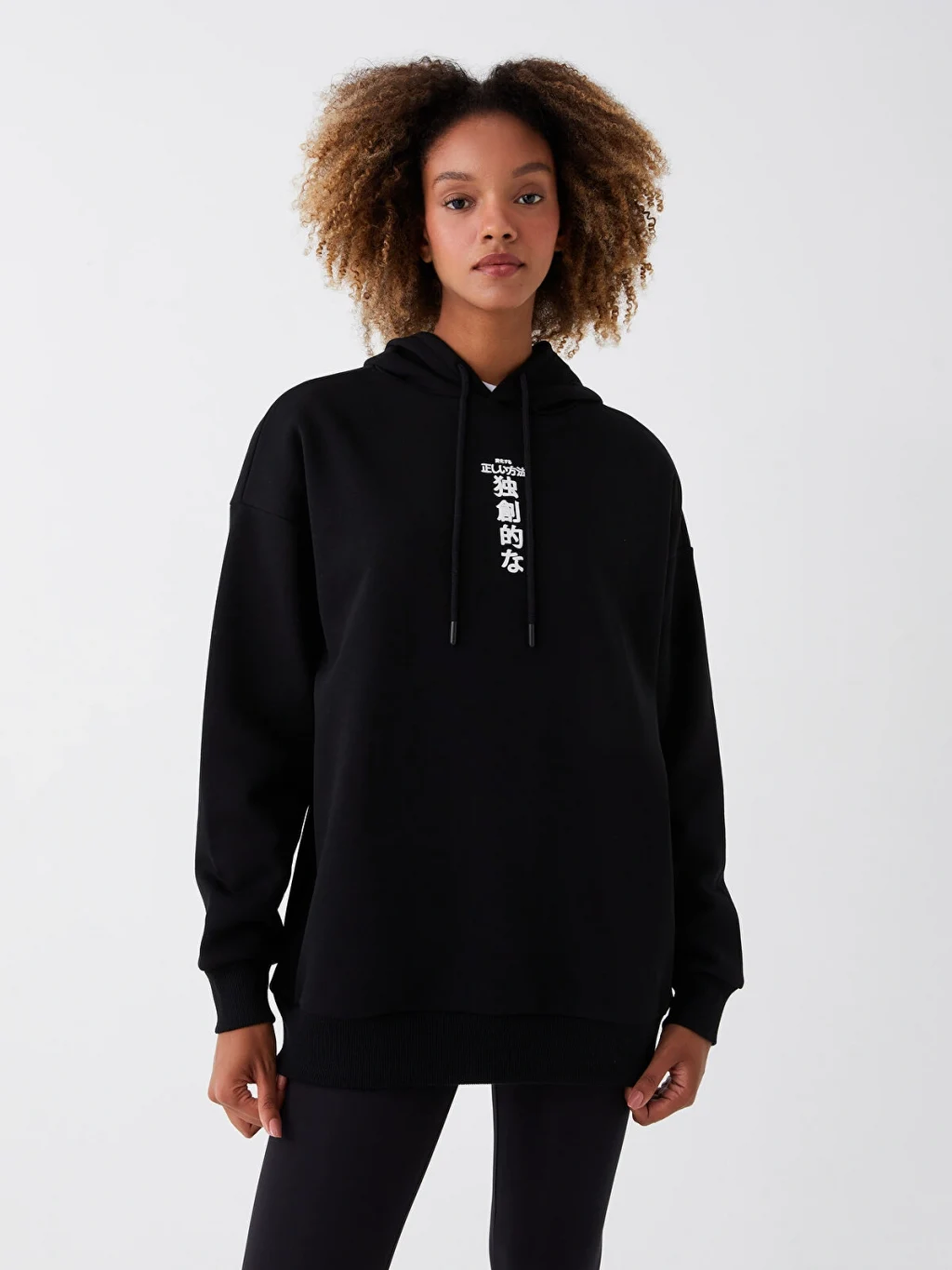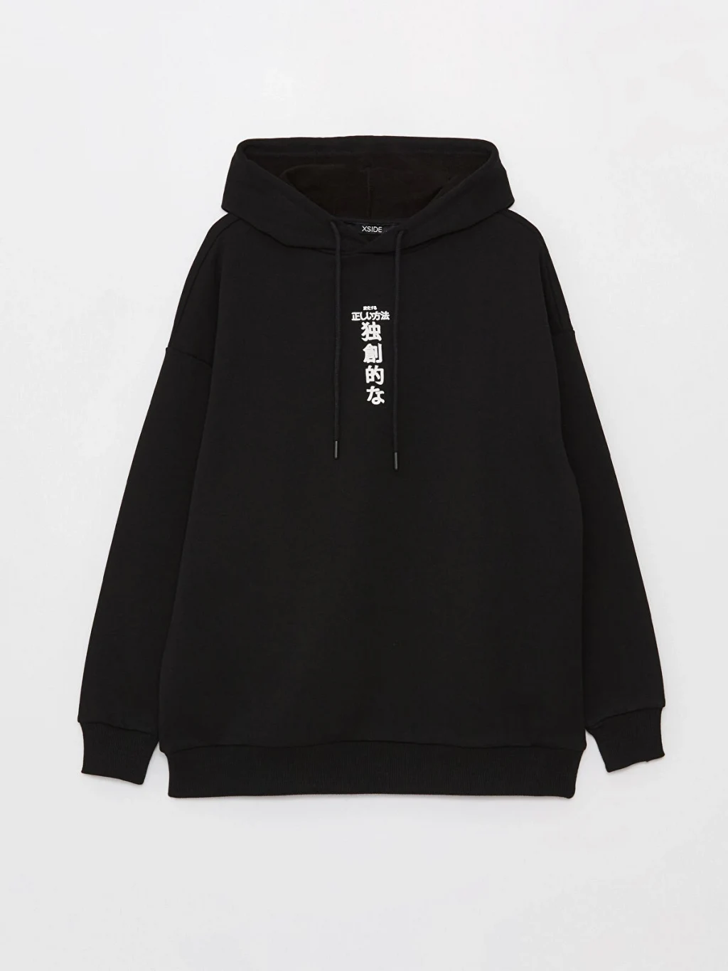 Bağcıklı sabit kapüşonlu baskılı oversize sweatshirt, kaliteli 3 iplik kumaştan üretilmiştir. İçi yumaşak tüylü yapısı sayesinde sıcaklık ve konfor sağlar. Bilekleri ve alt kısmı ribanalı olan tasarımı, rahat bir oturuş ve şık bir görünüm sunar.