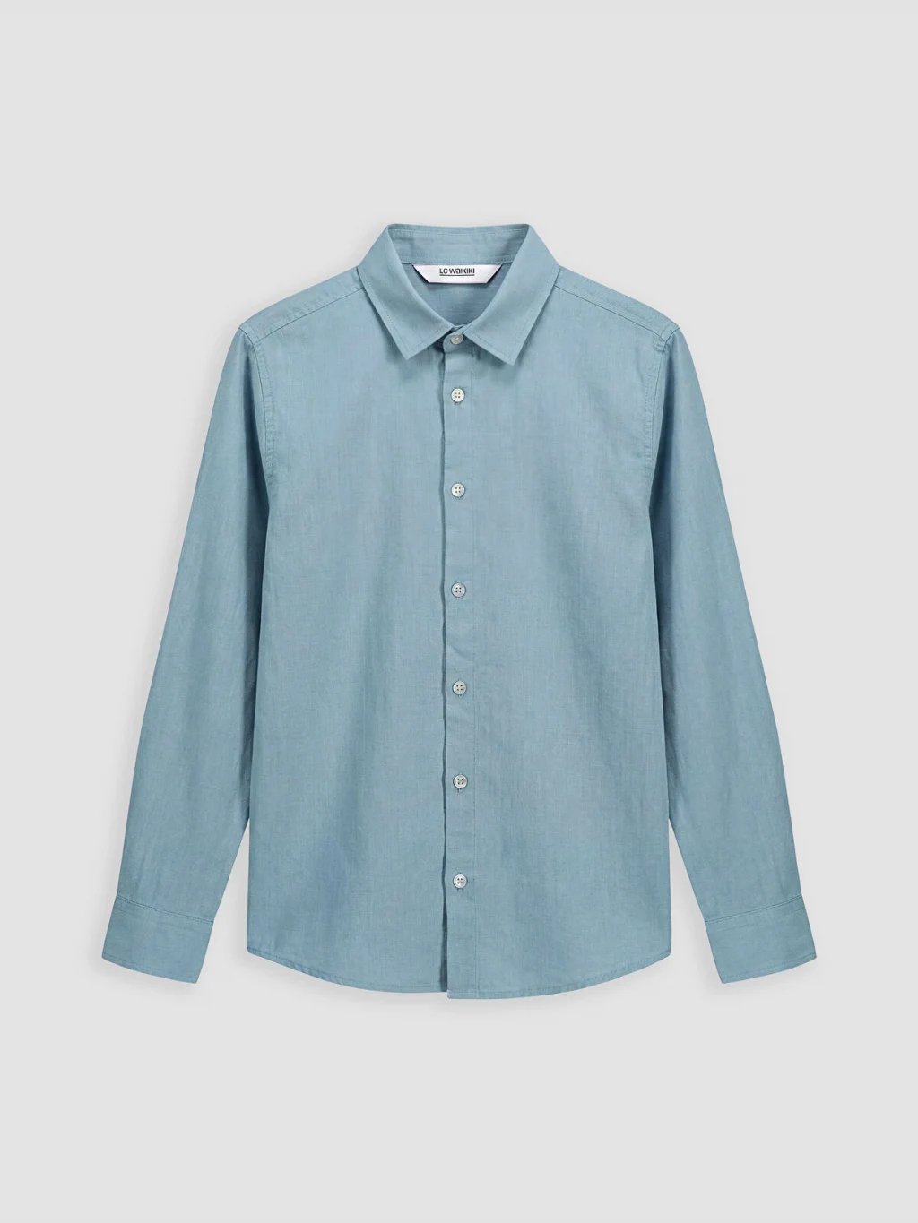 Erkek çocuk gömlek, %100 pamuk poplin kumaştan üretilmiştir. Önden düğme kapamalıdır ve katlanabilir uzun kollara sahiptir.