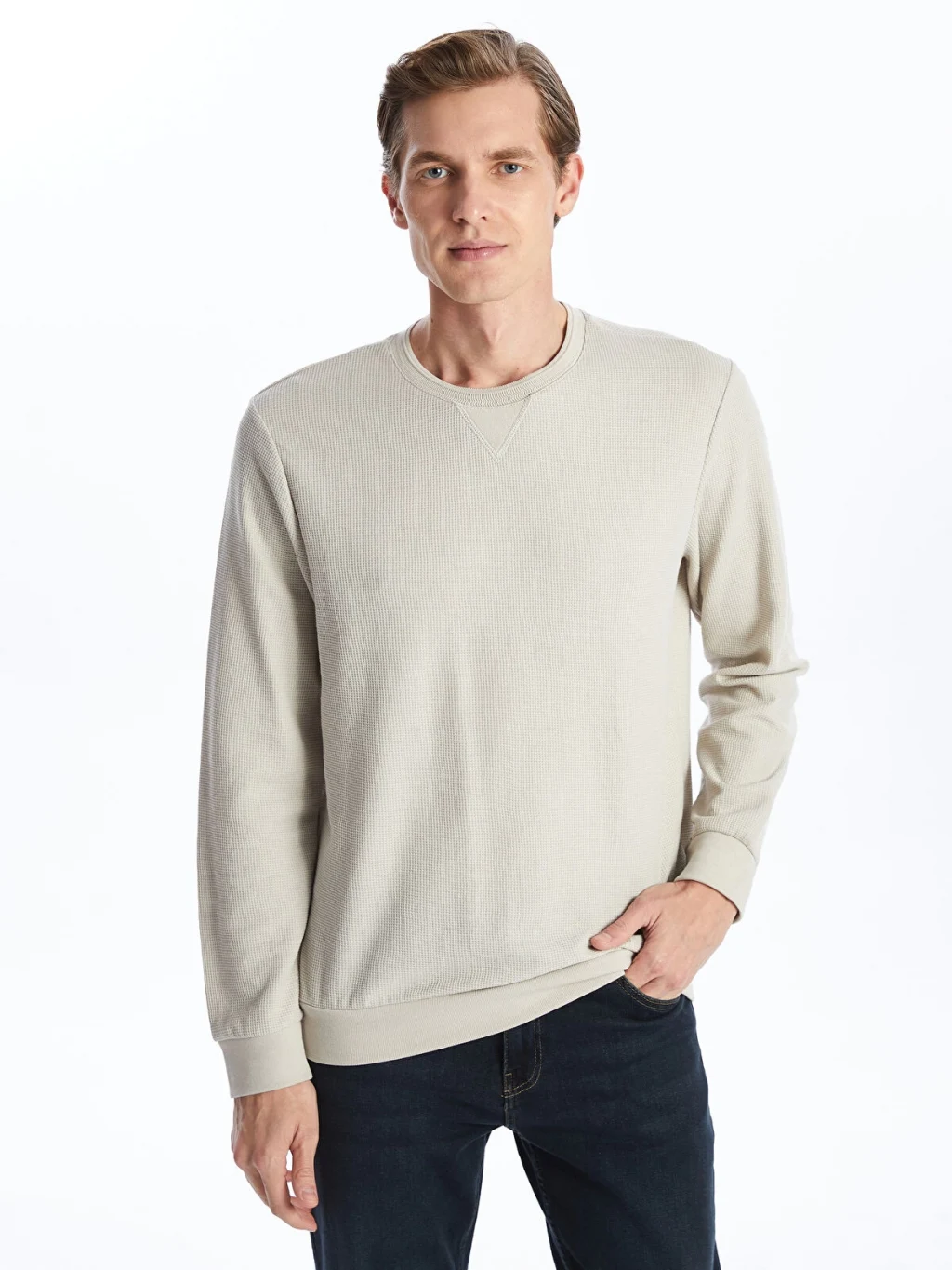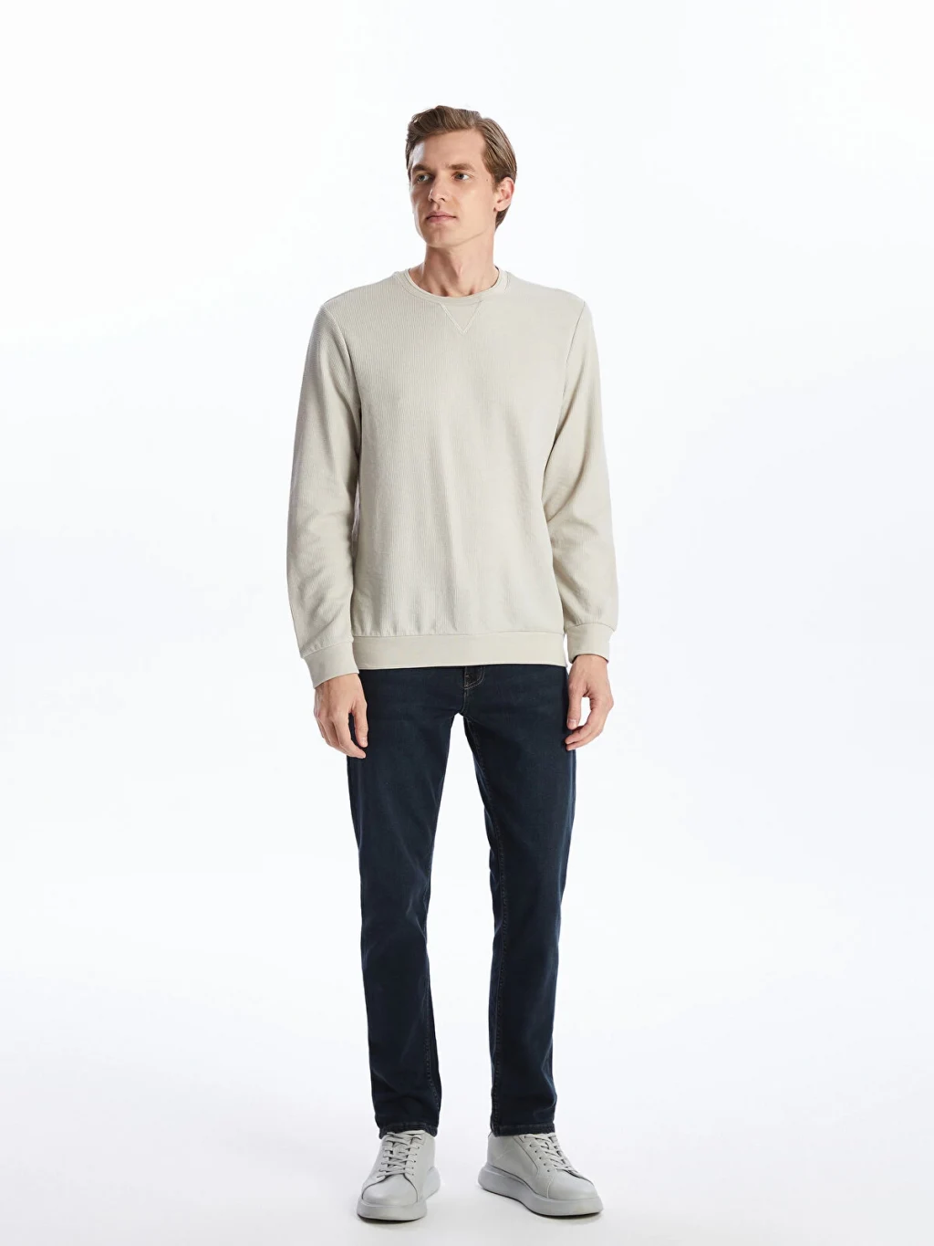 Düz ve modern bir tasarıma sahiptir. Pamuk karışımlı kumaşı sayesinde hem rahat hem de şık bir görünüm sunar. Soğuk havalarda sıcak tutan bu sweatshirt, stilinizi tamamlayacak bir parçadır.