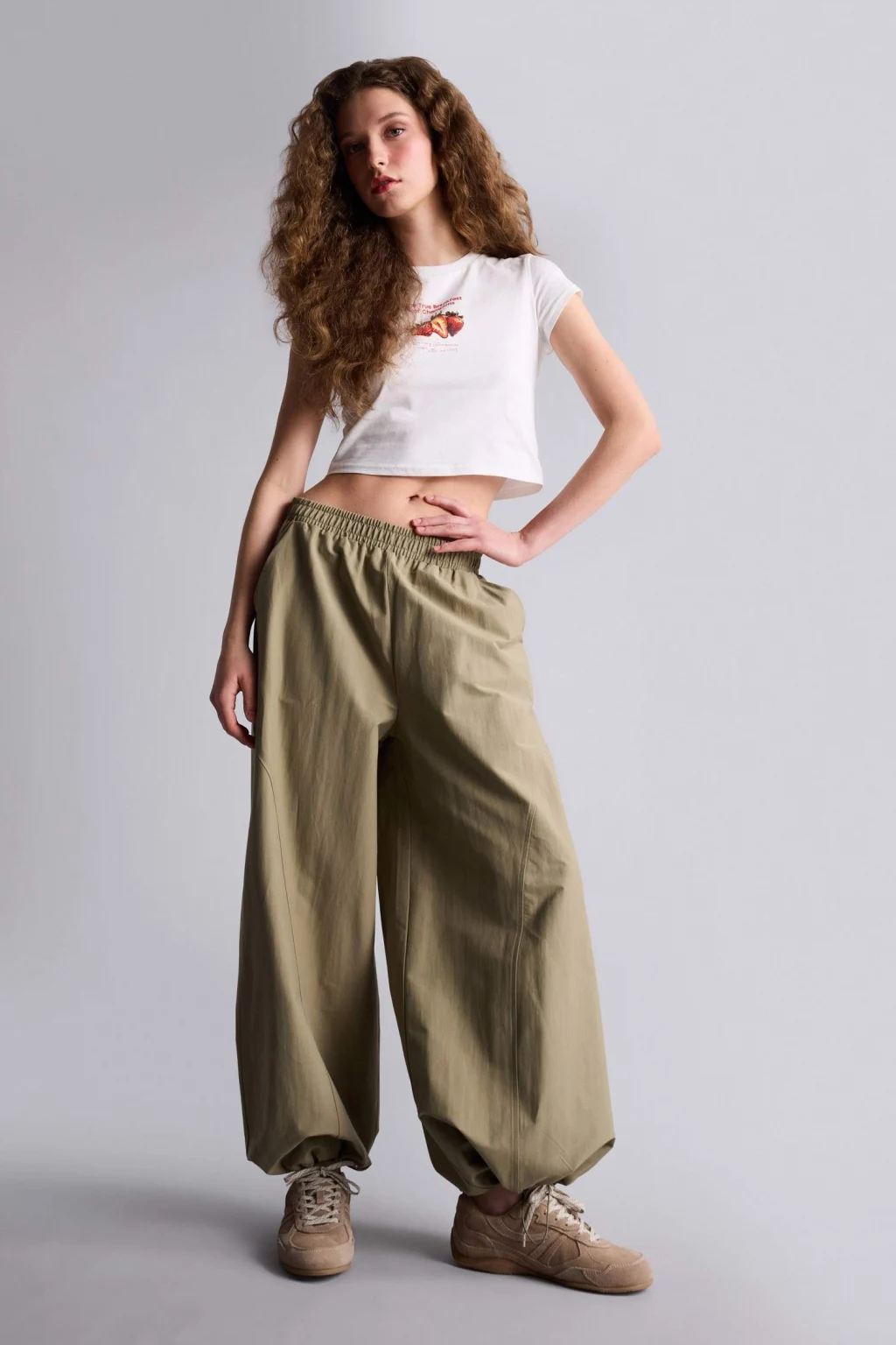Fitted Bisiklet Yaka Baskılı Tişört, vücut hatlarını zarifçe saran kesimiyle stilinize dinamik ve fit bir görünüm kazandırıyor. Modern kadının günlük gardırobunda kilit rol oynayan Fitted kalıbı, feminen bir silüet çizerken yüksek pamuk içerikli esnek kumaşı gün boyu konforlu bir hareket alanı sunar. Klasik bisiklet yaka tasarımı, ön kısımdaki dikkat çekici baskı detayıyla birleşerek en sade kombinlere bile enerjik bir karakter katar. Nefes alabilen dokusu sayesinde sıcak günlerde ferahlık sağlayan bu tişört, jean pantolonlar, mini etekler veya blazer ceketler içine giyildiğinde çabasız bir şıklık yaratır. Gardırobunuzun temel parçalarına modern bir dokunuş eklemek için tasarlanan bu model, hem sportif hem de şehirli stilin vazgeçilmezi olacak.