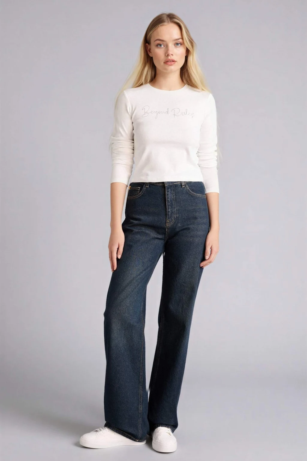 LCW Kids Mavi Bisiklet Yaka Dokulu Kız Çocuk Tişört