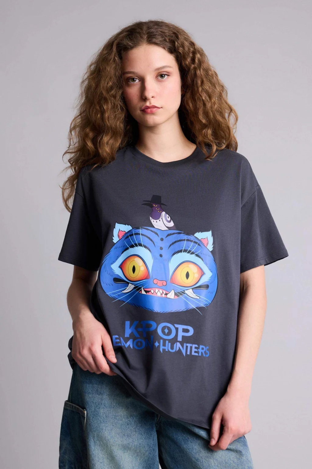 Defacto H0254AXAR191 Antrasit Kpop - Demon Hunters Oversıze Tişört
