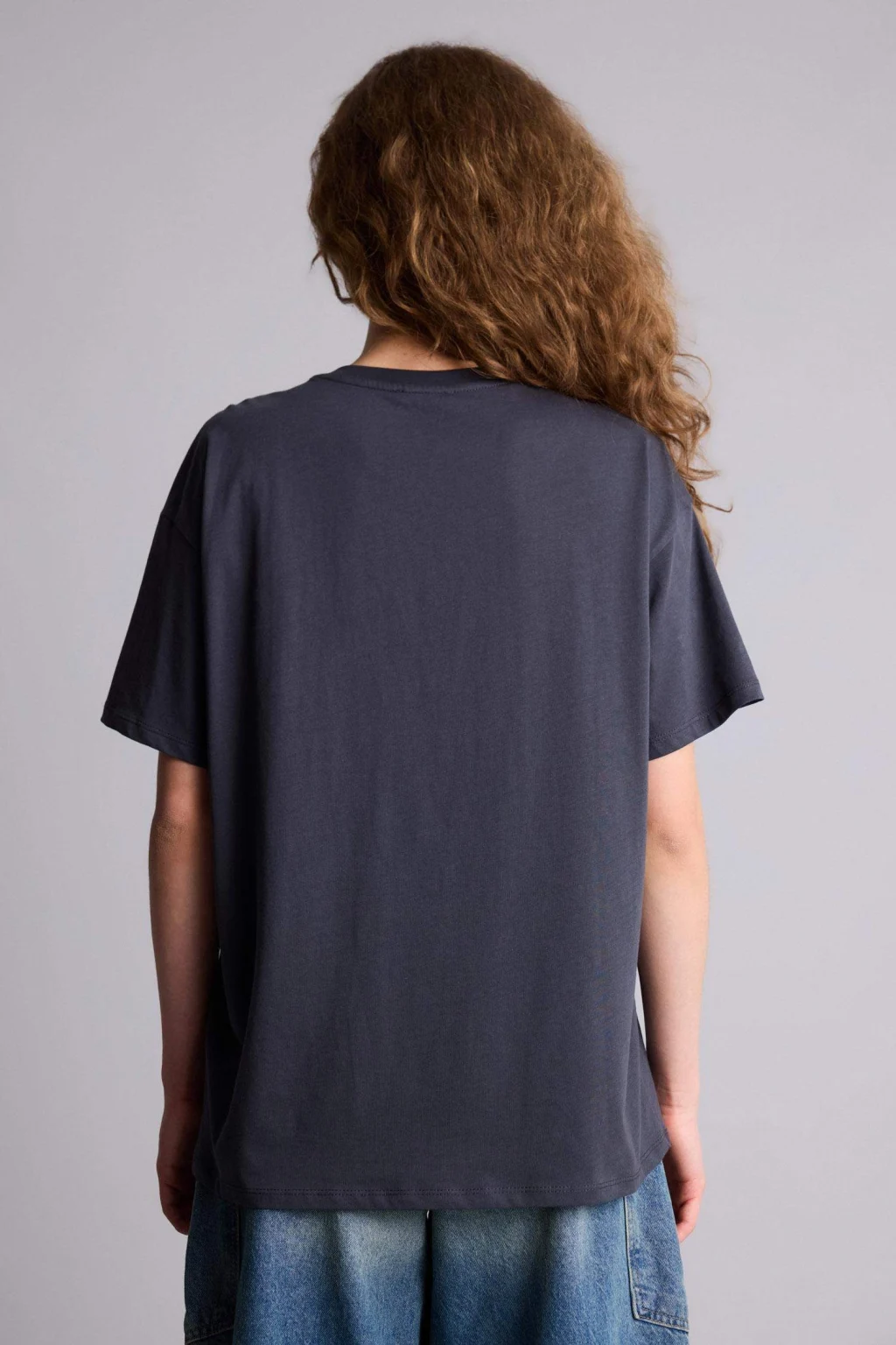 XSIDE Siyah Bisiklet Yaka Baskılı Kısa Kollu Kadın Tişört