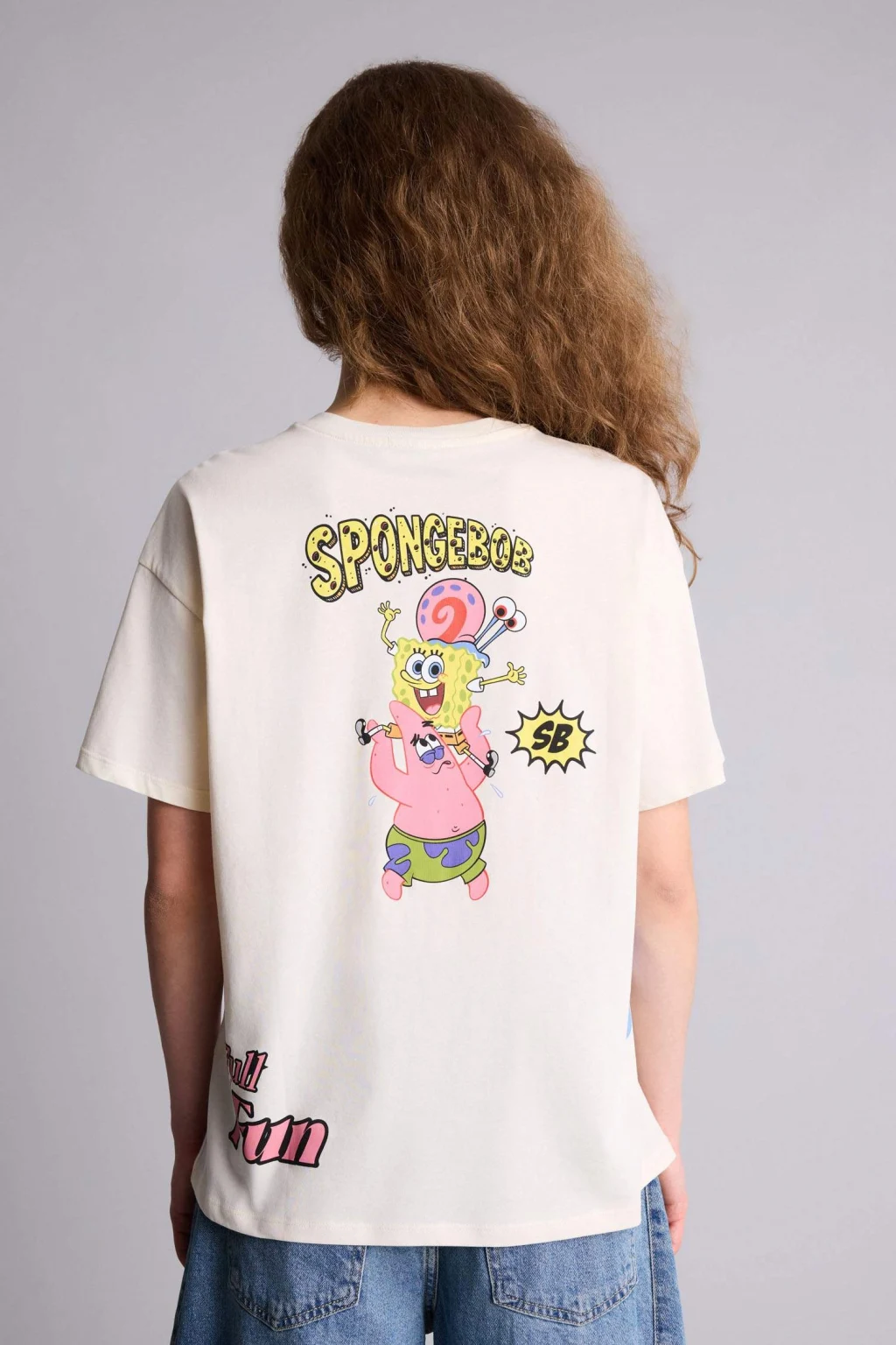 Defacto H0259AXER103 Ekru SpongeBob Oversıze Sırt Baskılı Tişört