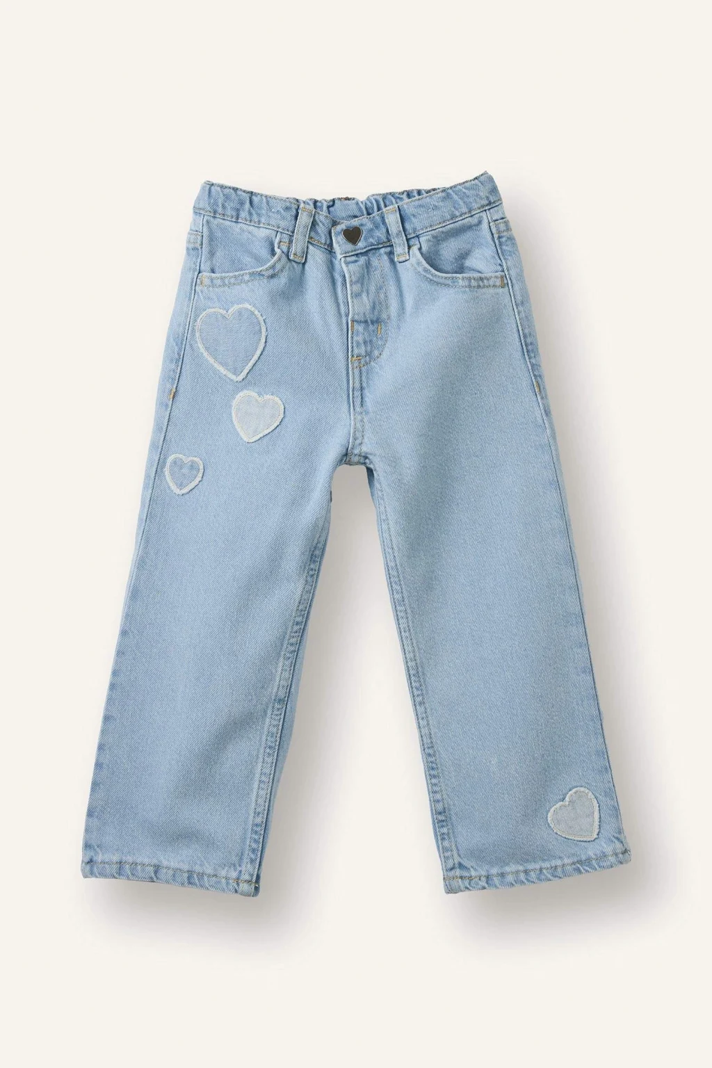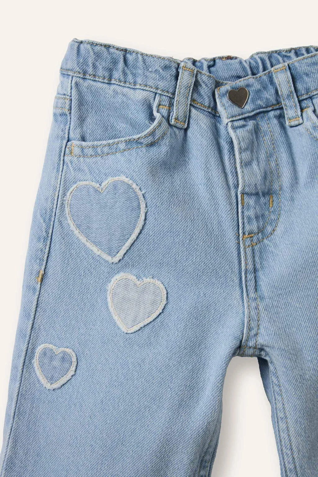 Kalp patch detaylarıyla tasarlanan pamuklu kız bebek pantolon, sevimli ve şık bir görünüm sunar. Yumuşak ve rahat kumaşı, günlük kullanımda konfor sağlar ve farklı kombinlerle kolayca uyum sağlar.
