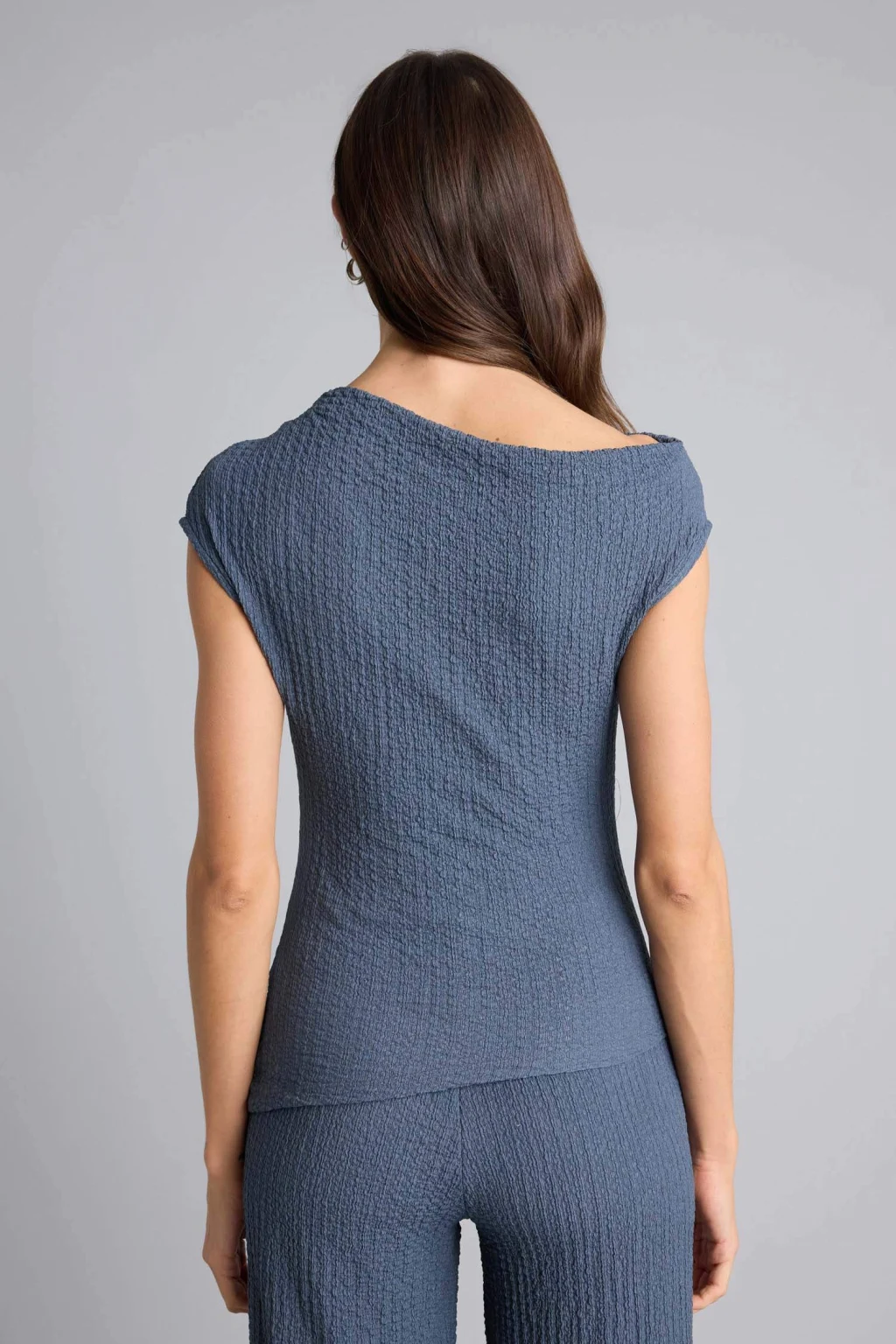Yetişkin kadınlar için özel olarak tasarlanmış İndigo renkli kısa kollu tişört. Slim fit kalıbı ve düşük omuz detayıyla şıklığı ve rahatlığı bir arada sunar. Bürümcük kumaştan üretilmiş olan bu temel çeşit, ilkbahar/yaz mevsim koşullarına uygun. Tek omuzlu yaka detayıyla fark yaratın.