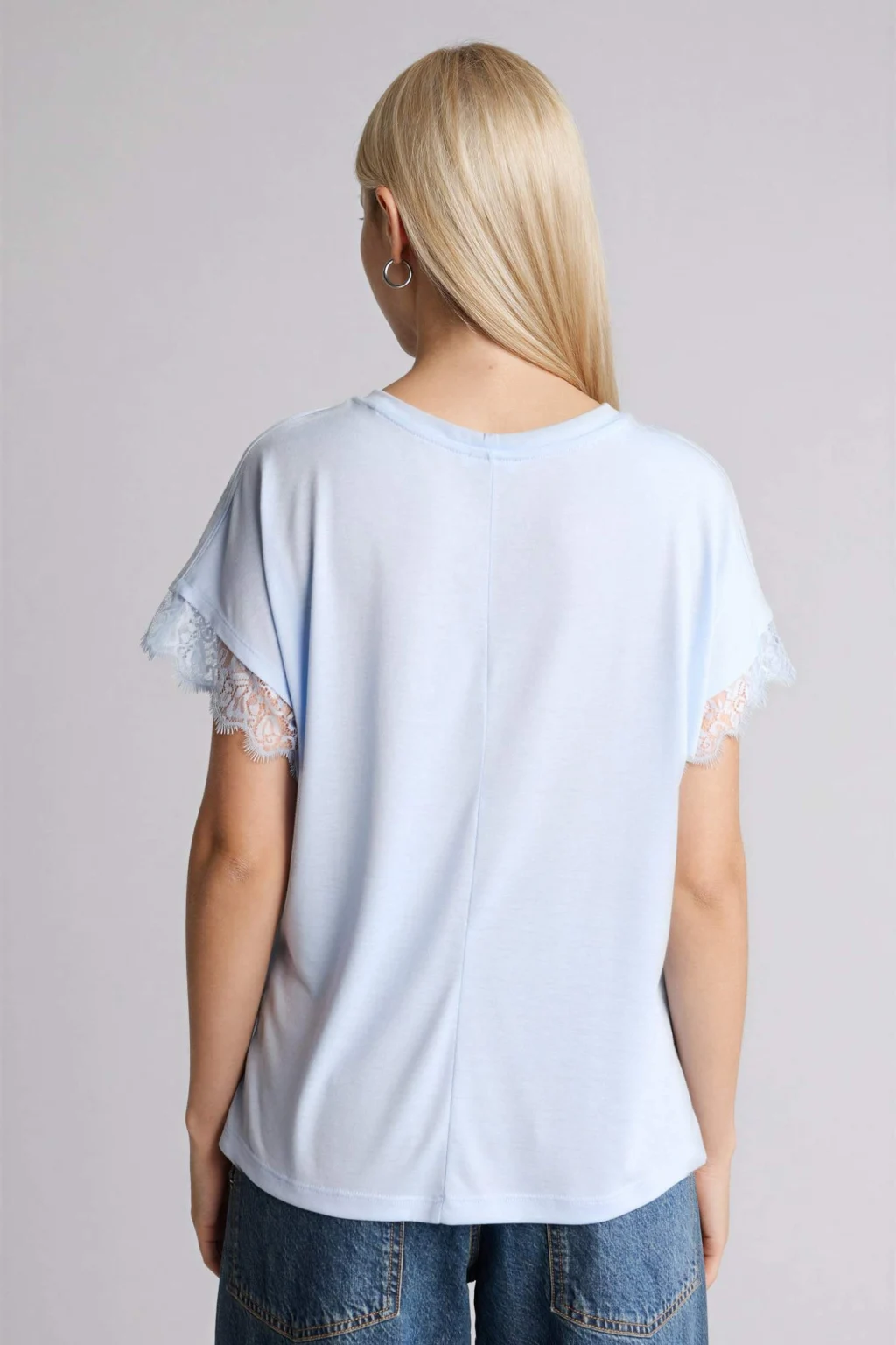 LCW Vision Mavi V Yaka Düz Kısa Kollu Kadın Tişört