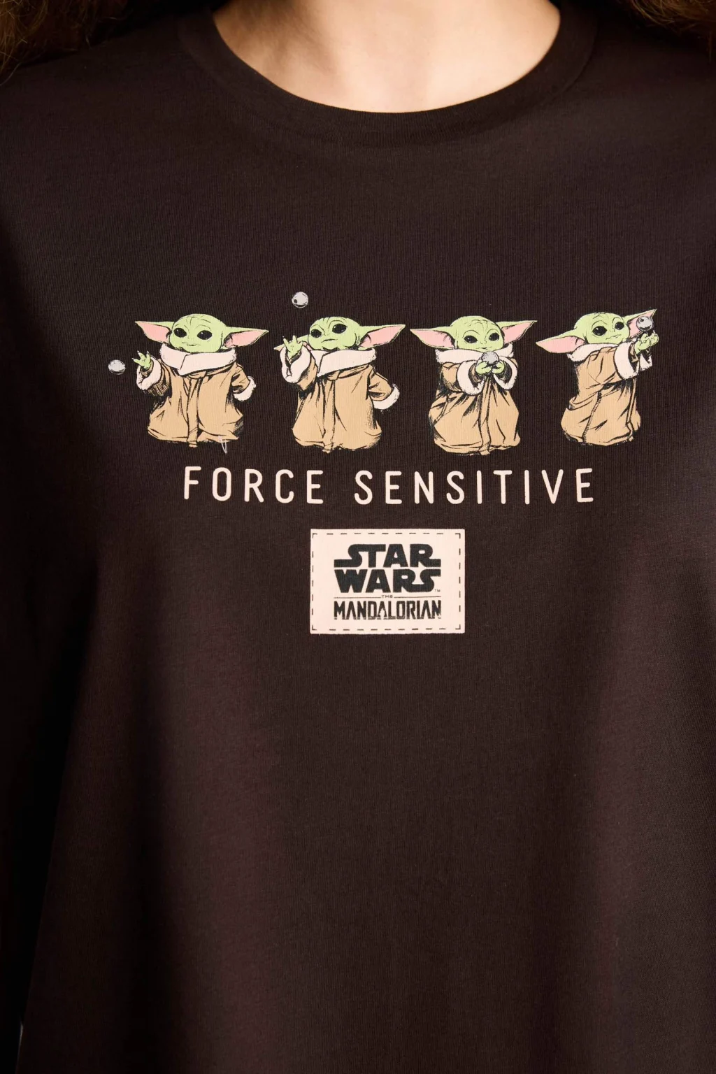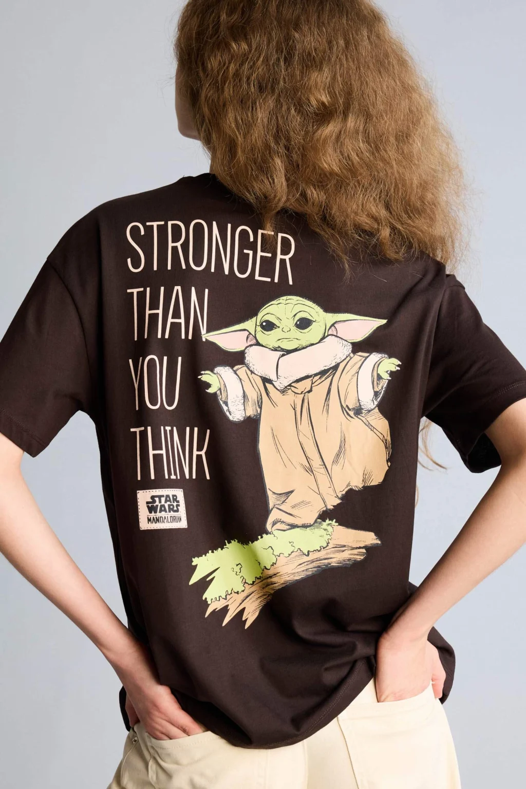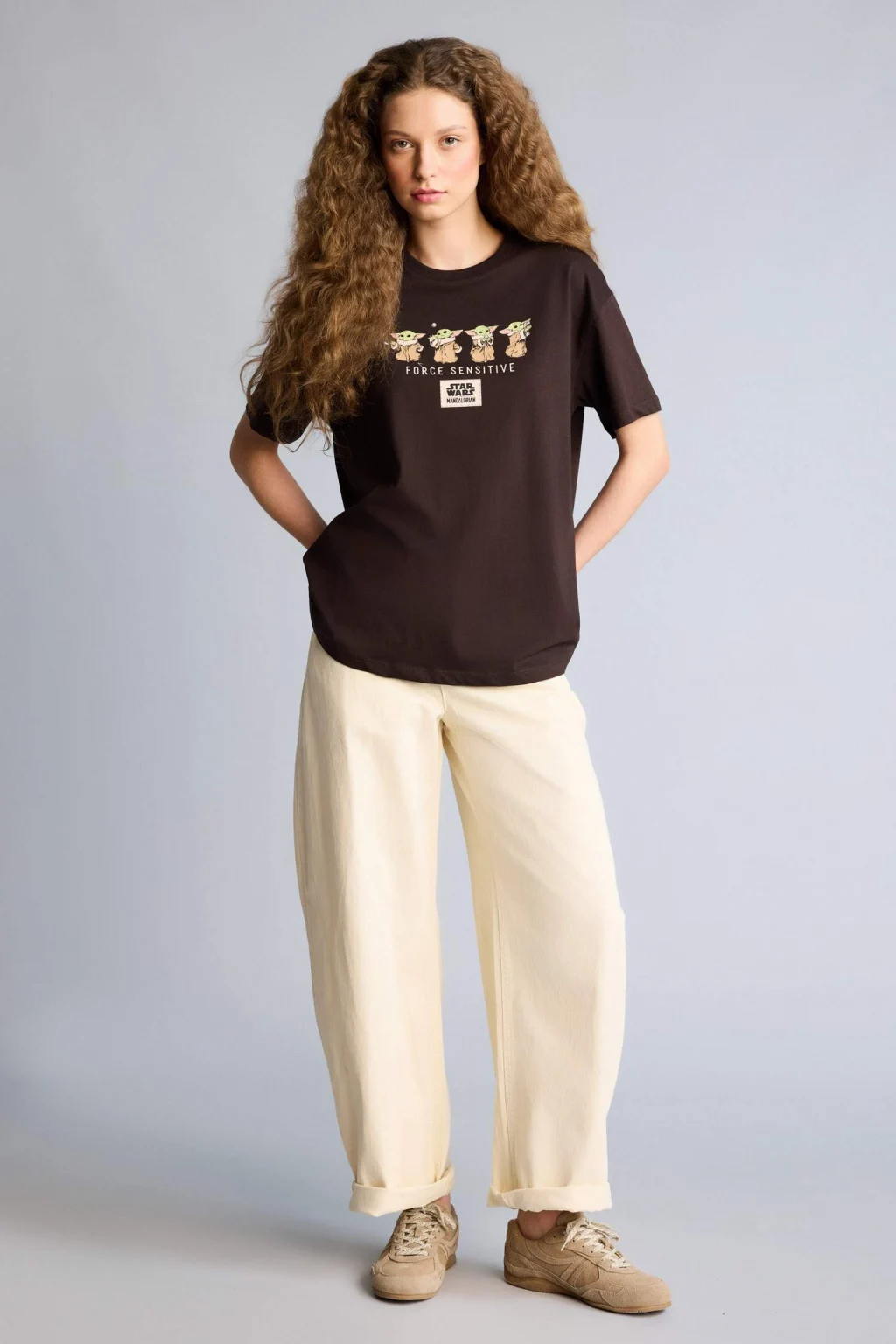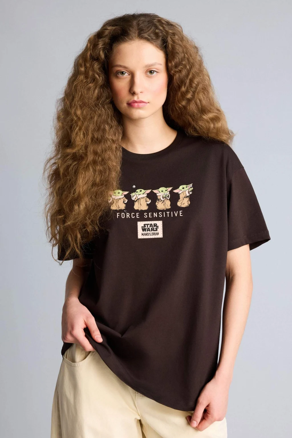 Defacto H1073AXBN207 Kahve Star Wars-Mandalorıan Oversıze Bisiklet Yaka Baskılı Kısa Kollu Tişört