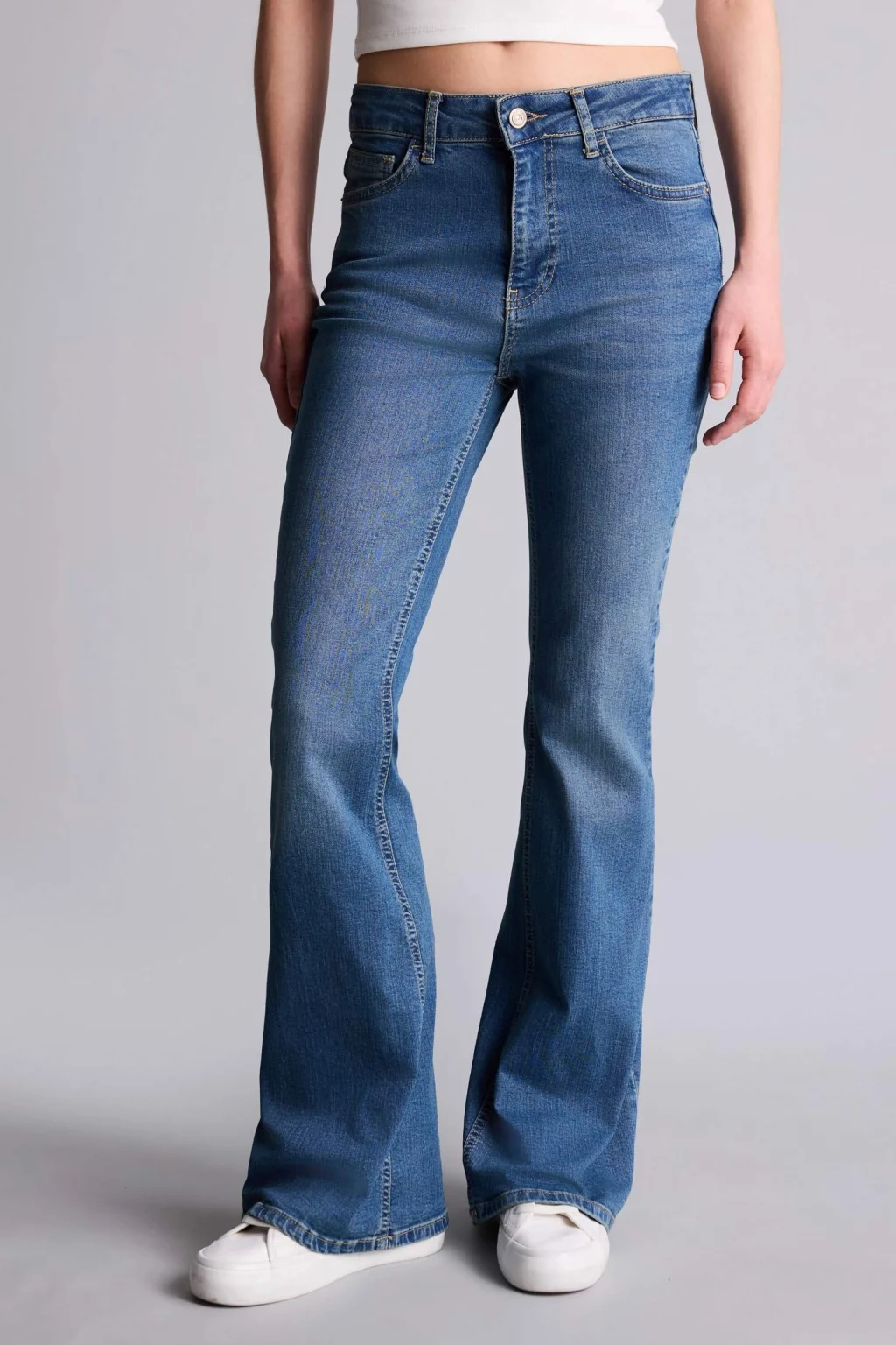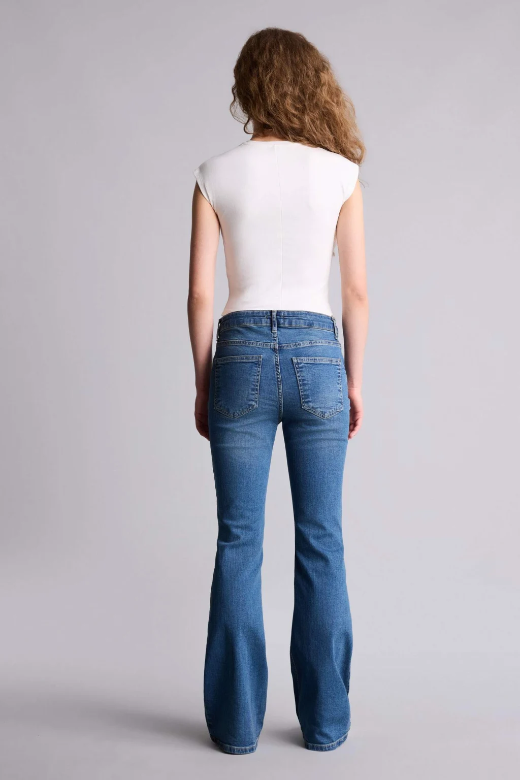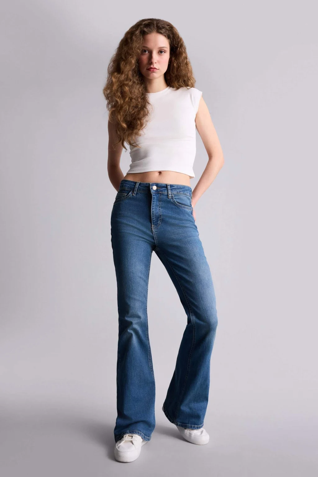 Mia Flare Fit Yüksek Bel Uzun Jean Yıkamalı Pantolon, yüksek bel tasarımıyla beli vurgularken flare kesimiyle modern ve zarif bir siluet sunar. Yıkamalı detayları sayesinde tarzınıza hareket katar ve günlük kombinlerinize şık bir dokunuş ekler.